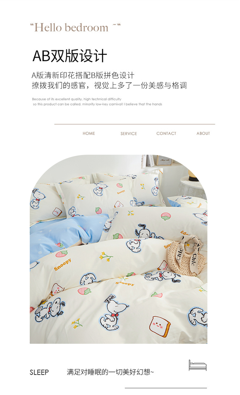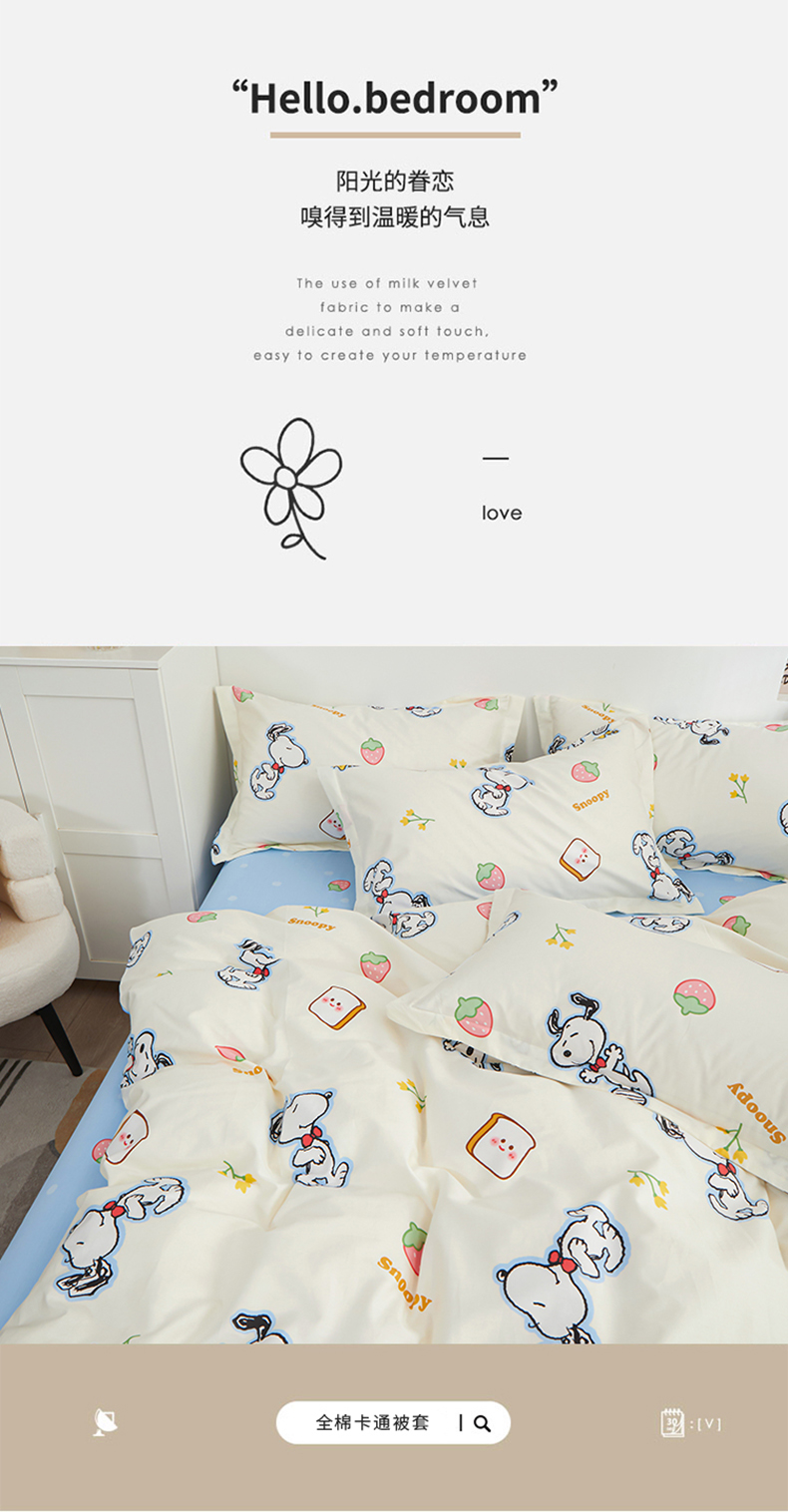 总钰伶 13372全棉史努比纯棉床单床笠款四件套(预留6厘米缩水尺寸),悠闲史努比,史努比和小糊涂,快乐史努比,彩色字母,字母史努比