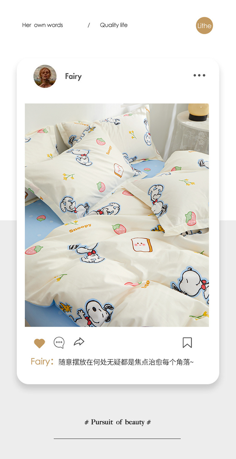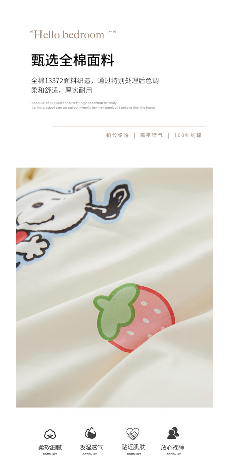 商品名称:总钰伶 新款纯棉13372史努比全棉单被套(预留6厘米缩水尺寸)