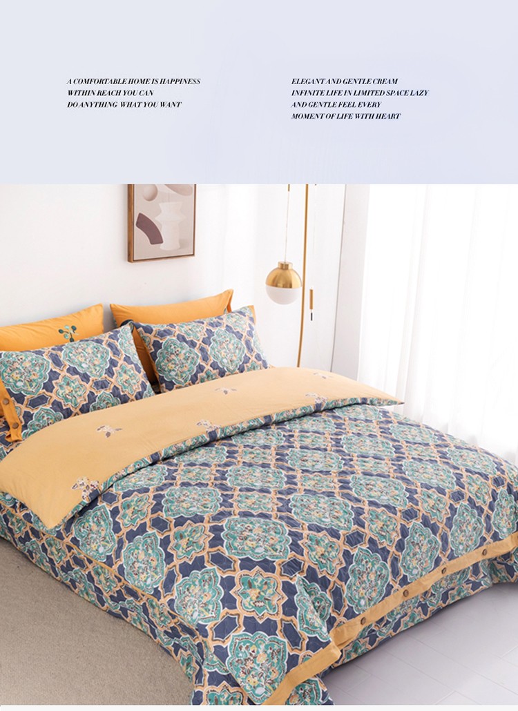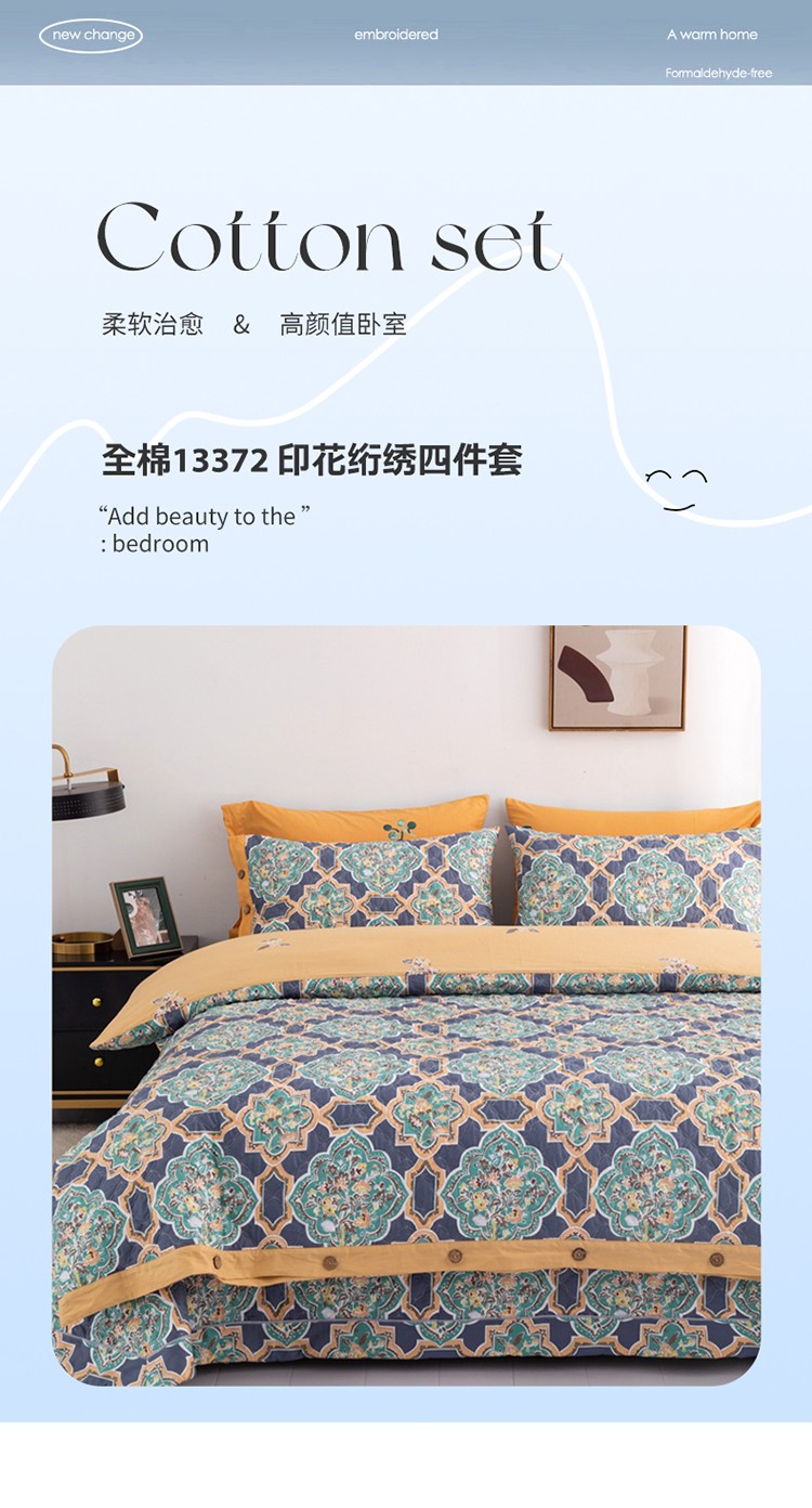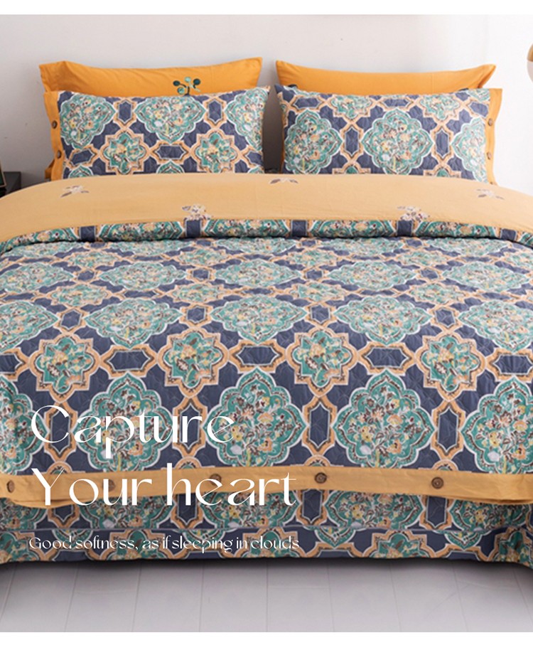 当前位置: 91家纺网 > 商品网购 > 床品套件 > 四件套 > 全棉普通四件套 > 优乐家纺 2023新款全棉印花绗绣2 四件套 时光印记-蓝