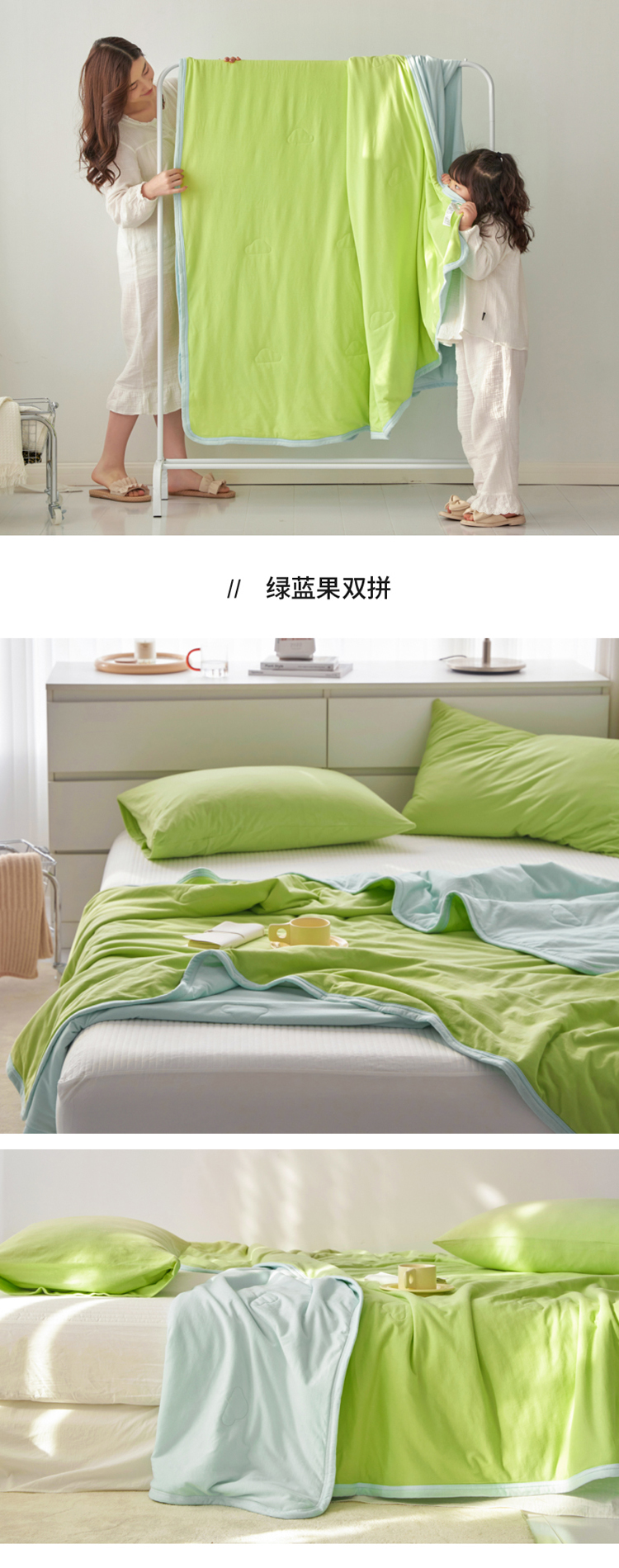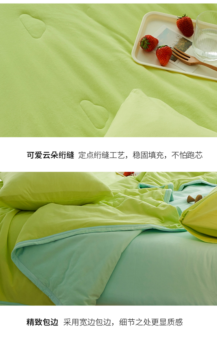 • 91家纺网 家纺一手货源 找家纺 风向标 2023新款全棉针织双拼夏被 绿蓝果双拼