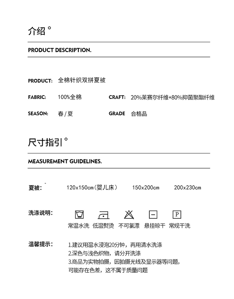 • 适用季节: 空调被/夏凉被