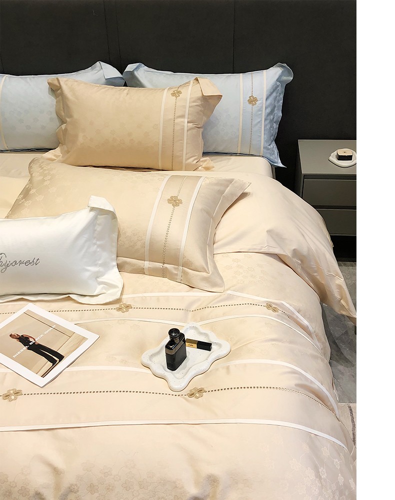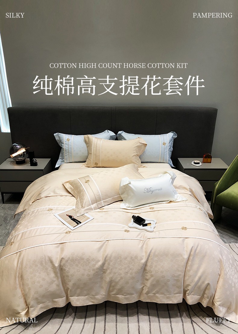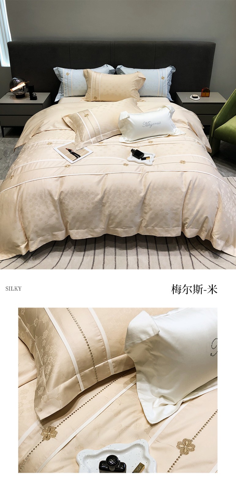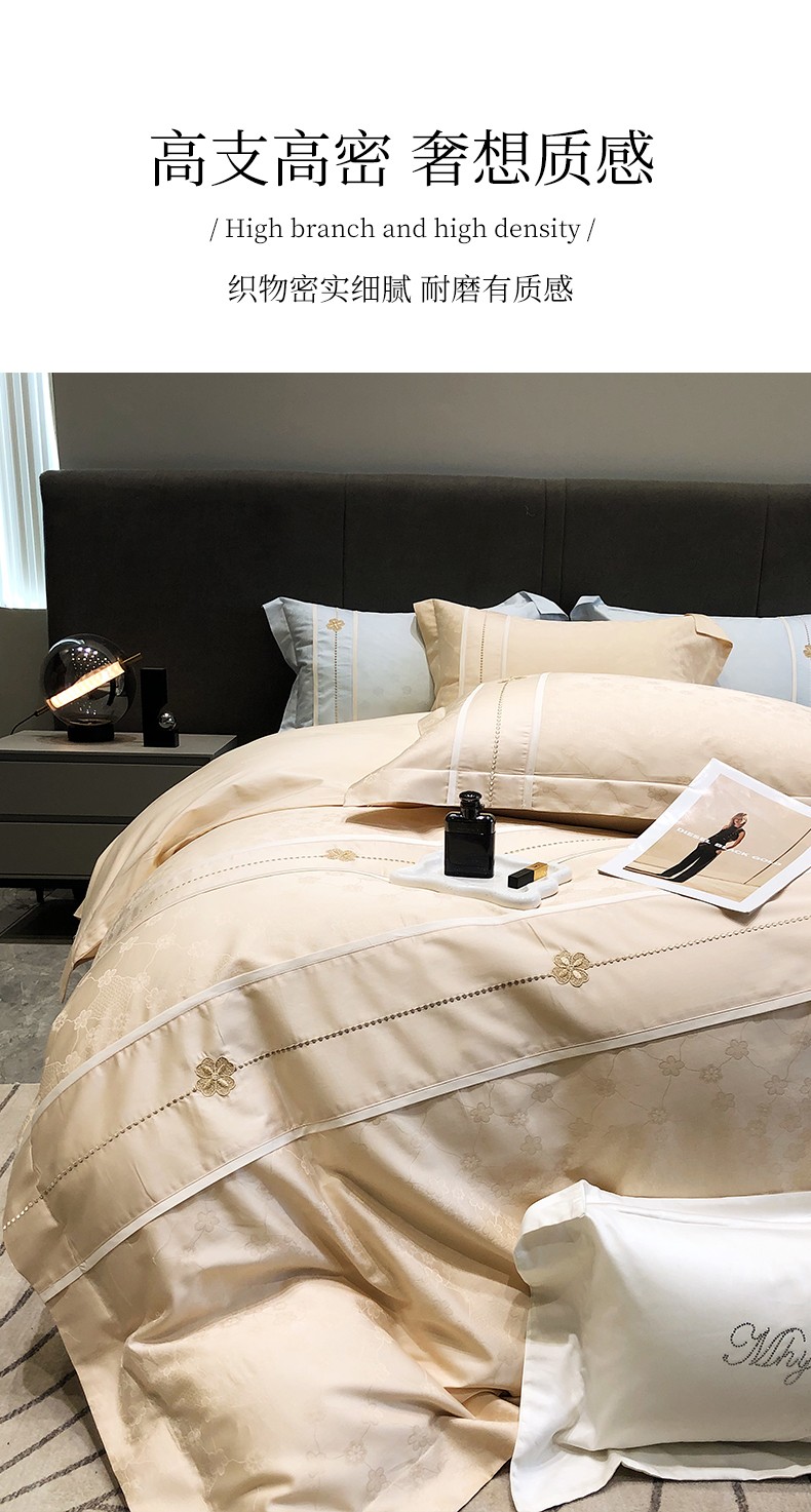 黑白森林2024款 100S支天丝棉提花四件套天丝全棉,芙拉维-裸灰,芙拉维-秋绿,圣露安-雾粉,圣露安-香槟,西西里-奶白,西西里-柔粉