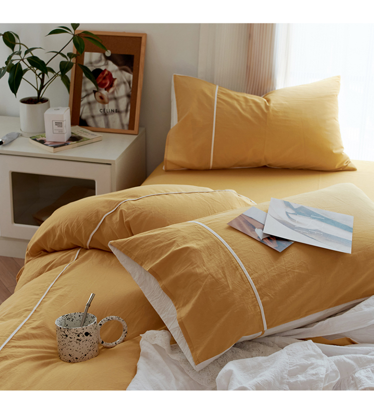 商品名称:纯棉水洗棉四件套纯色简约全棉被套工艺款床单床笠学生直播爆款 嵌线-芒果