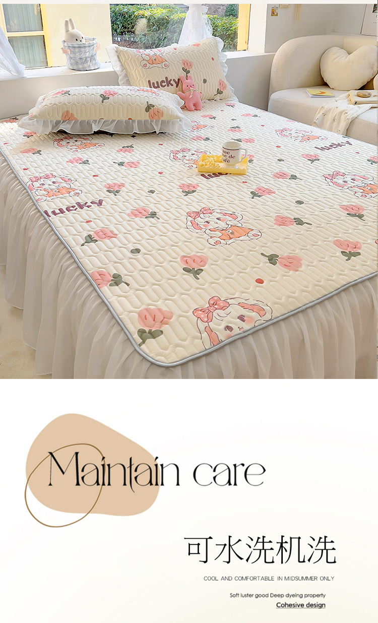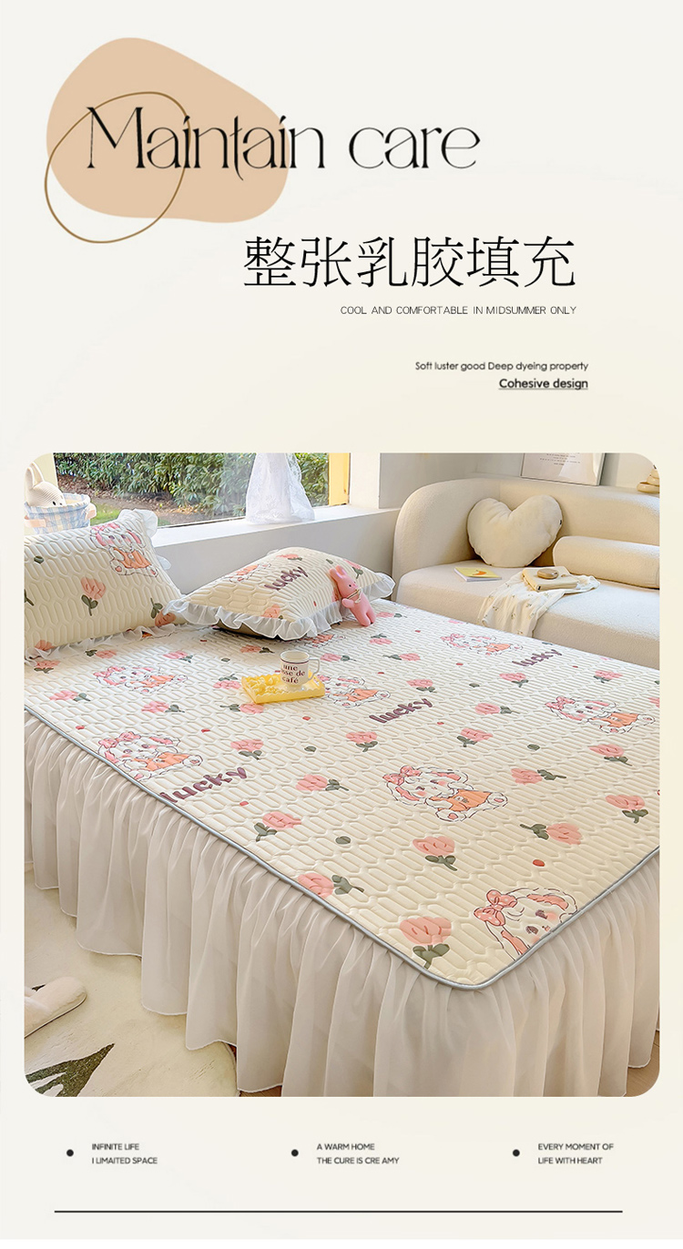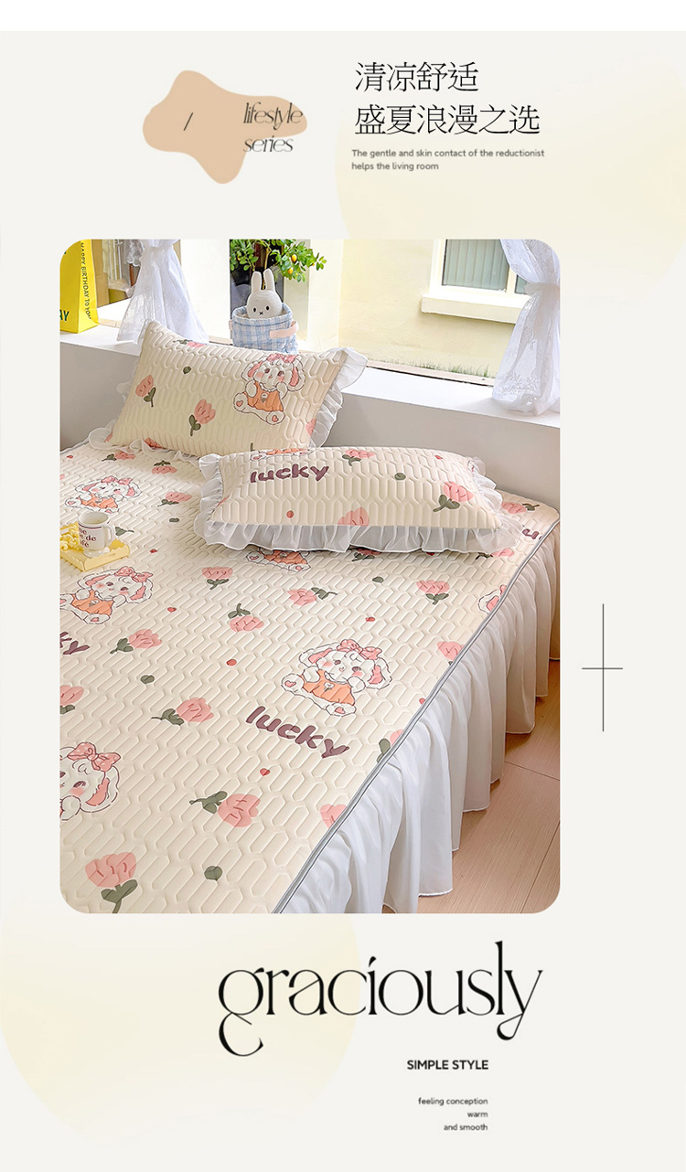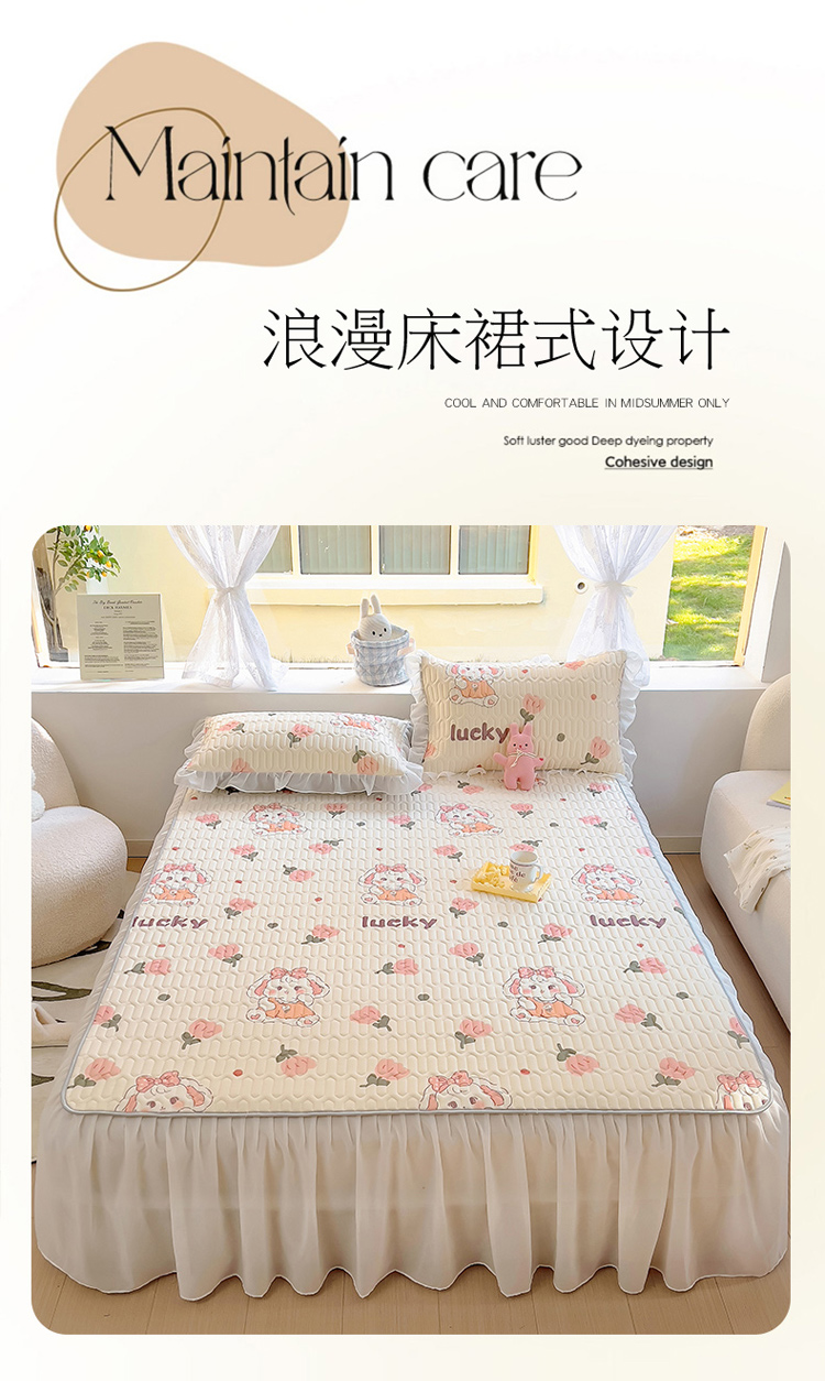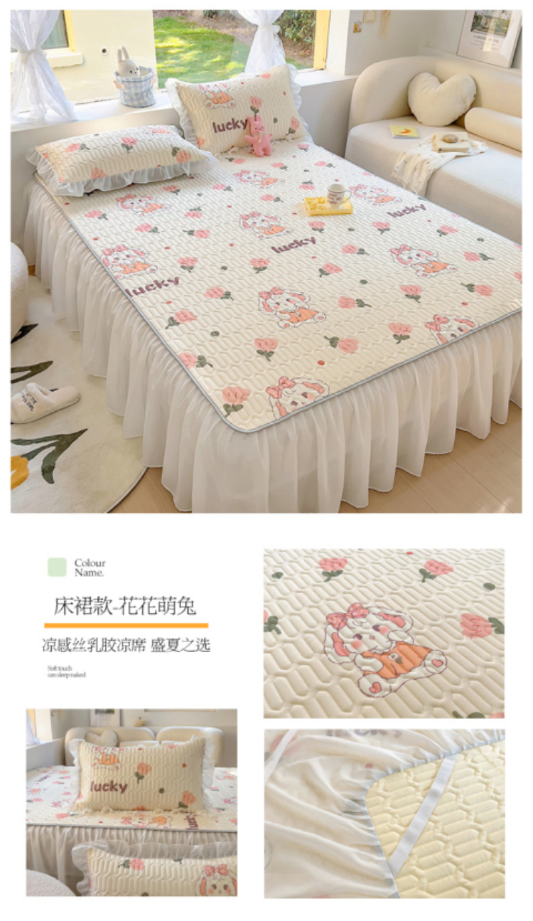 柒月家居2023新款乳胶床裙款凉席和夏被 床裙款-花花萌兔