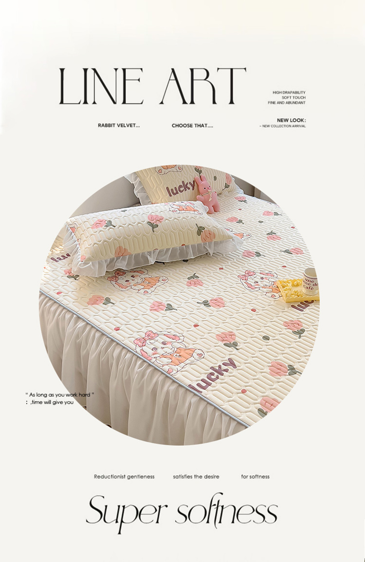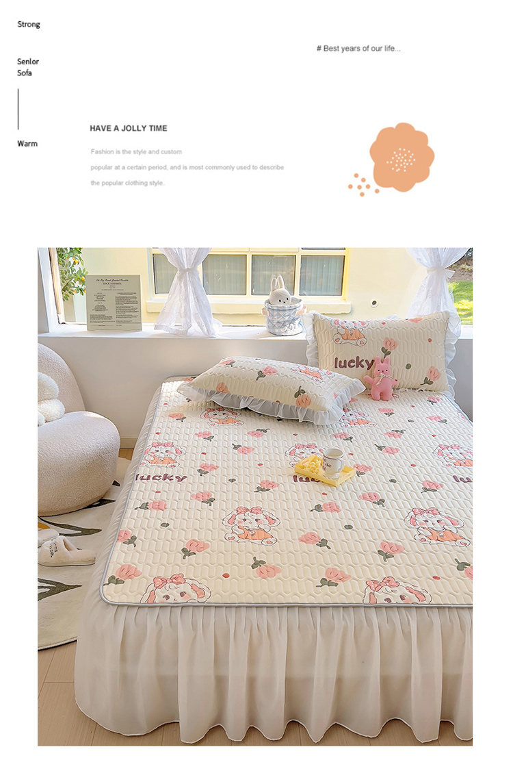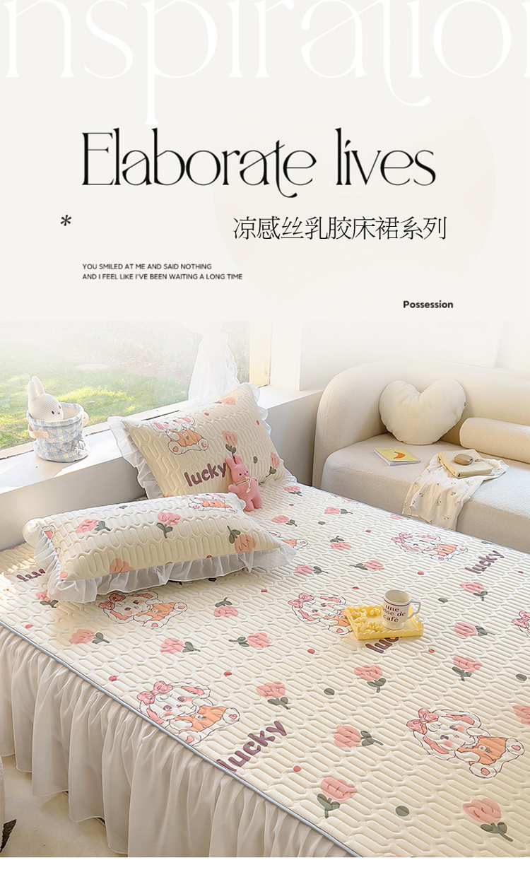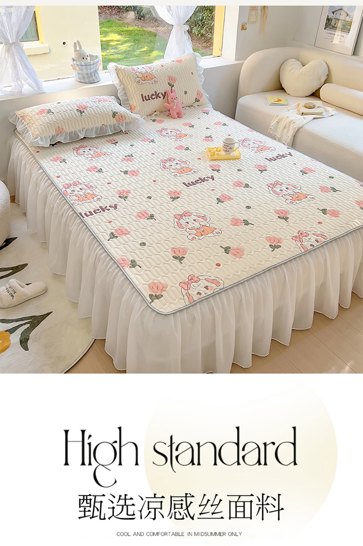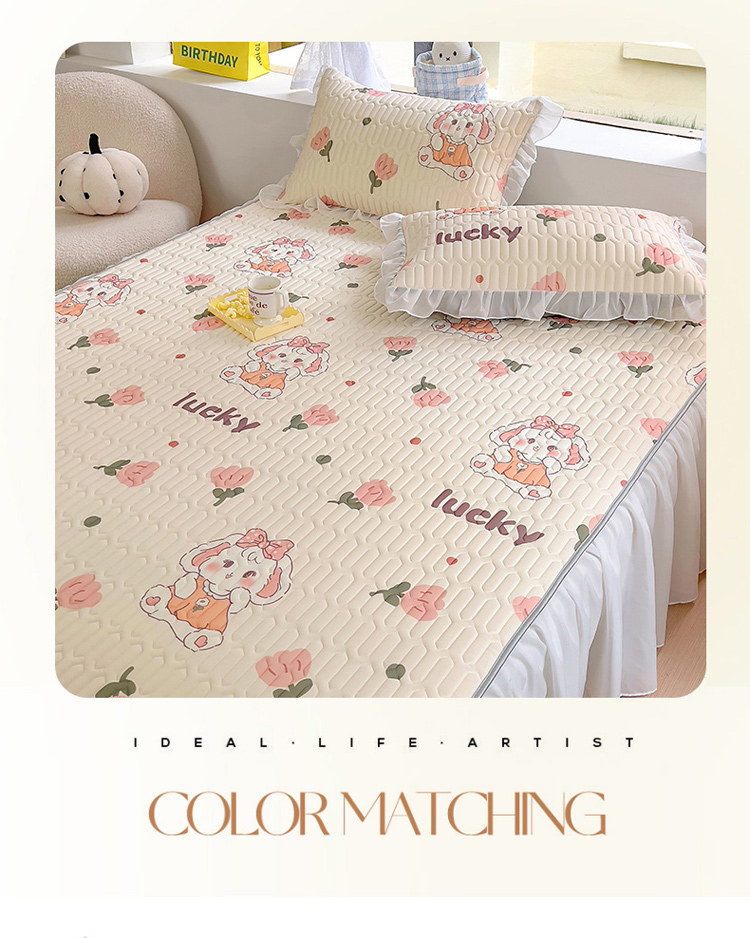 柒月家居2023新款乳胶床裙款凉席和夏被 床裙款-花花萌兔