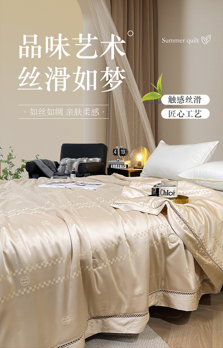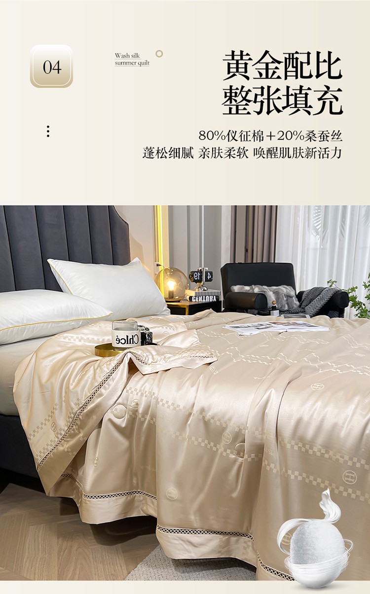 伊被源 2023新款莫代尔活性提花蚕丝夏被-浮光掠影 浮光掠影-香槟金