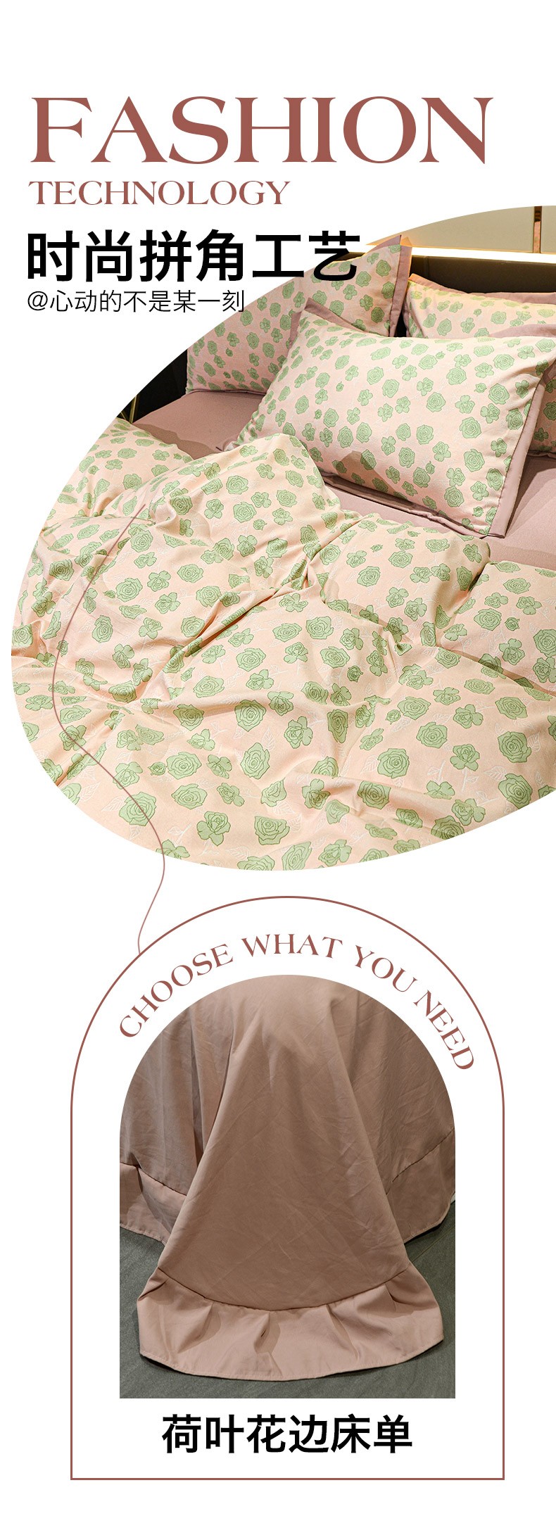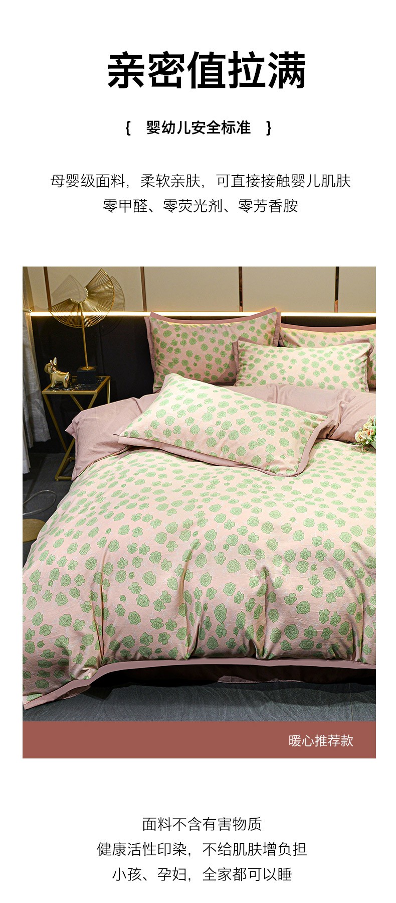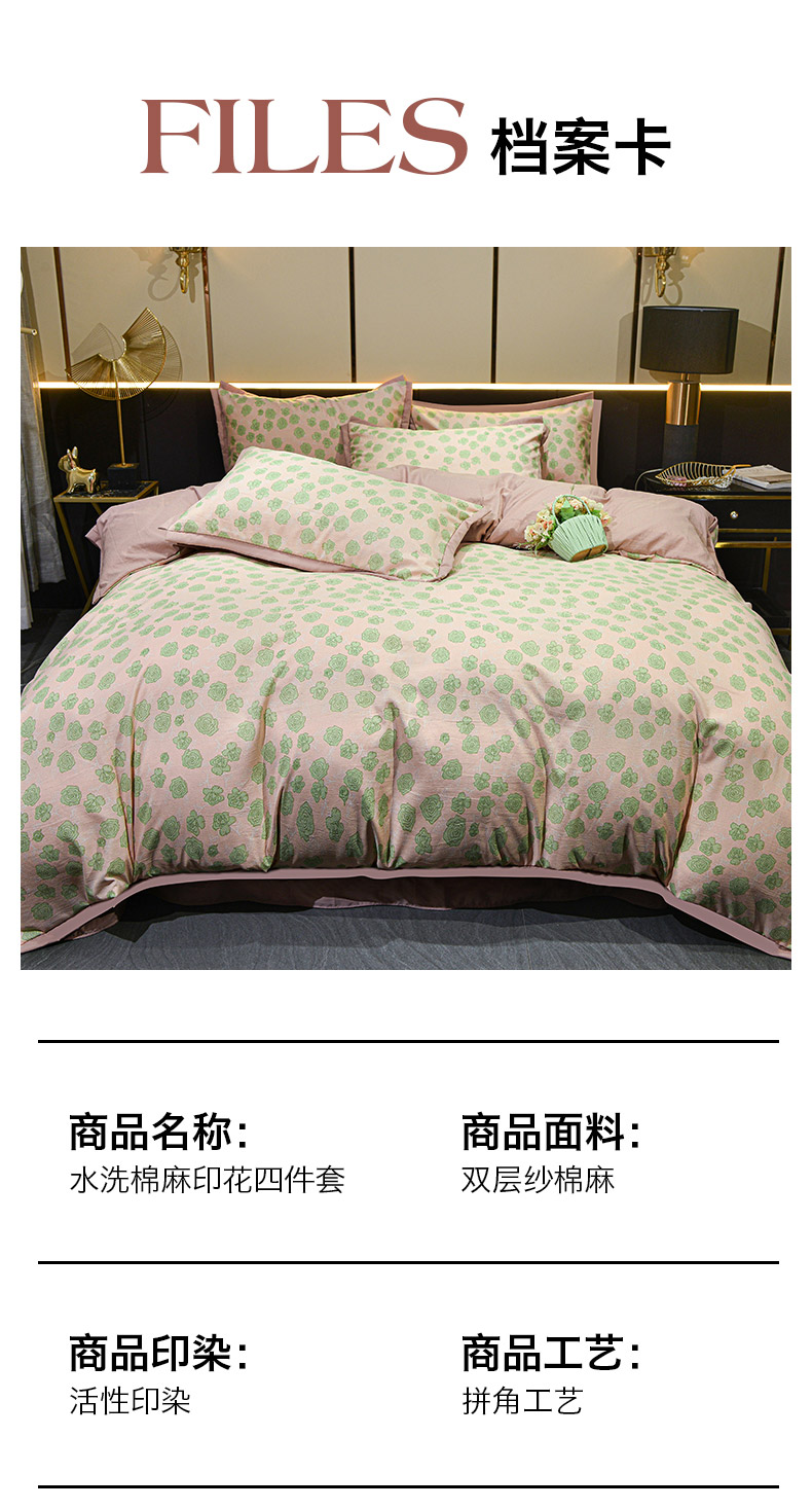 (总)梦柏 2023新款水洗棉麻床盖四件套,爱心绿,豹纹,春意,粉玫瑰,红豆,青花瓷,夕颜