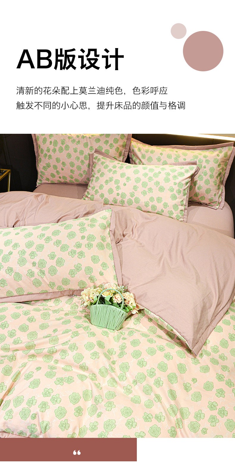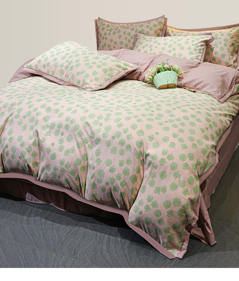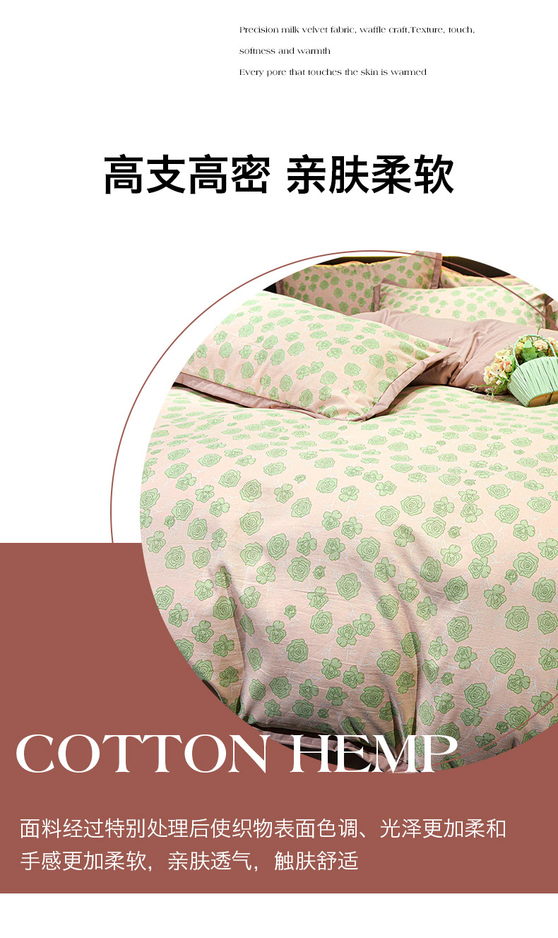 (总)梦柏 2023新款水洗棉麻床盖四件套,爱心绿,豹纹,春意,粉玫瑰,红豆,青花瓷,夕颜