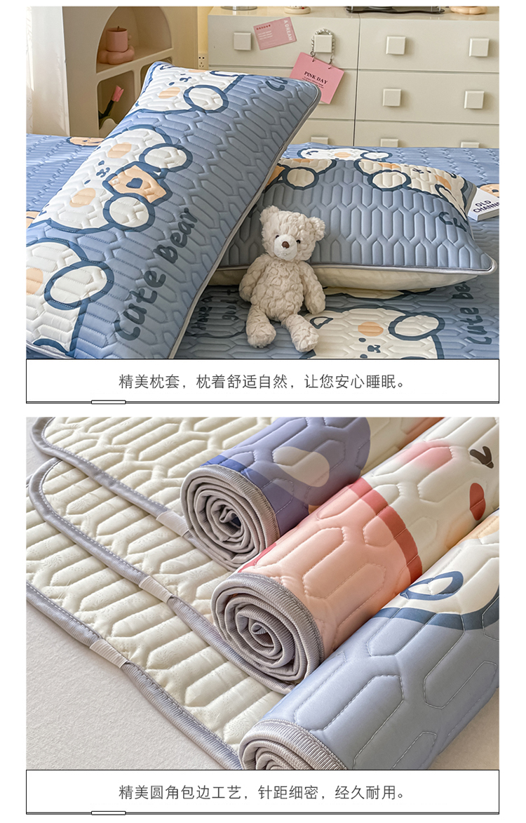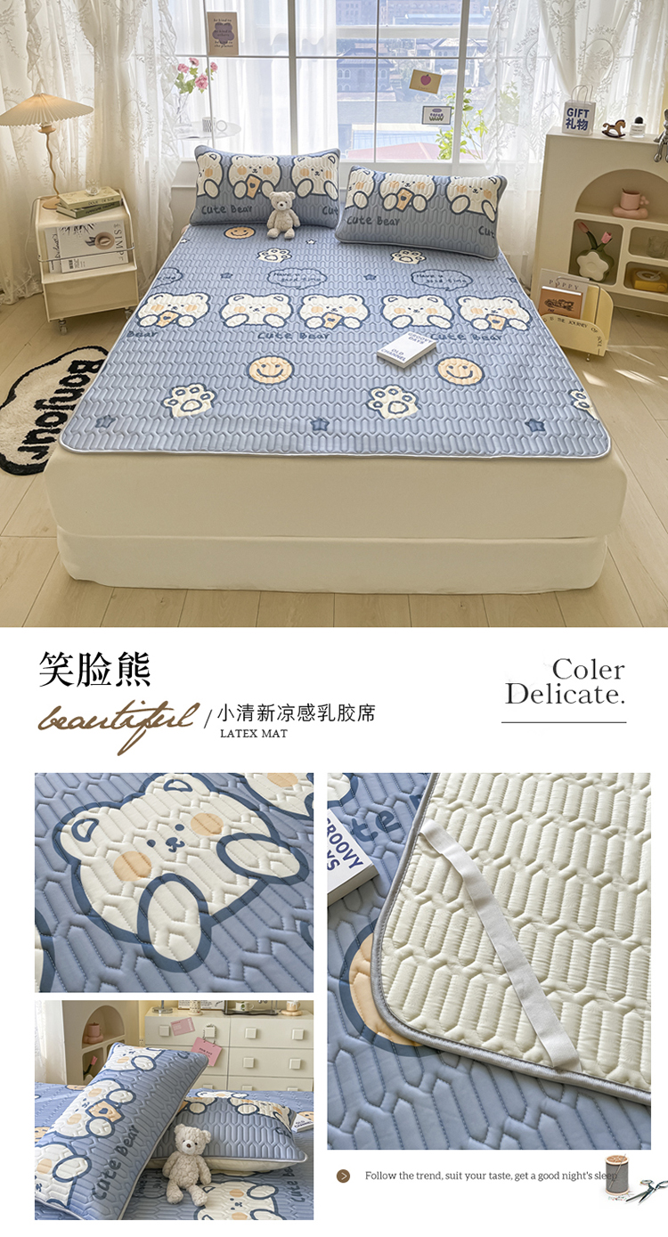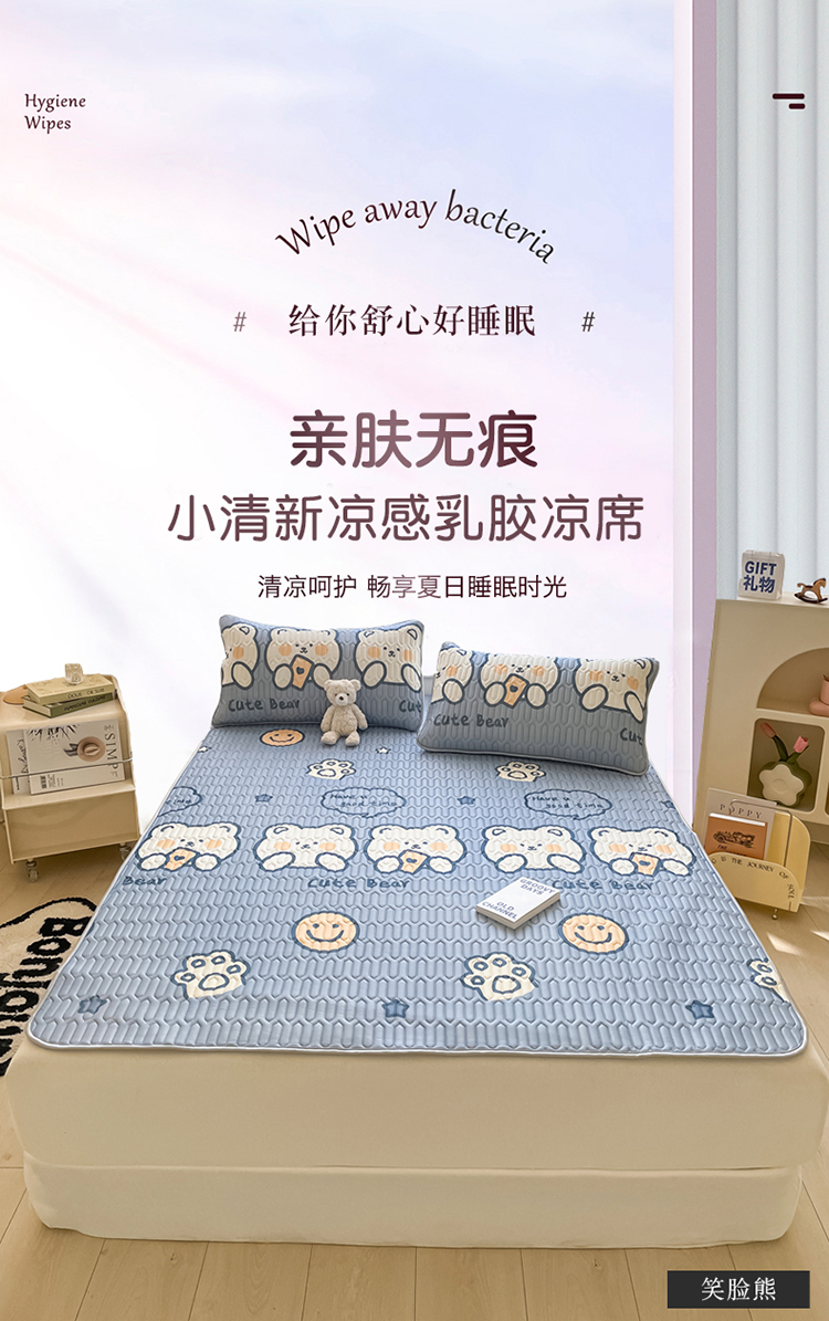 商品名称:金爱家 2023新款小清新凉感丝乳胶凉席三件套 笑脸熊