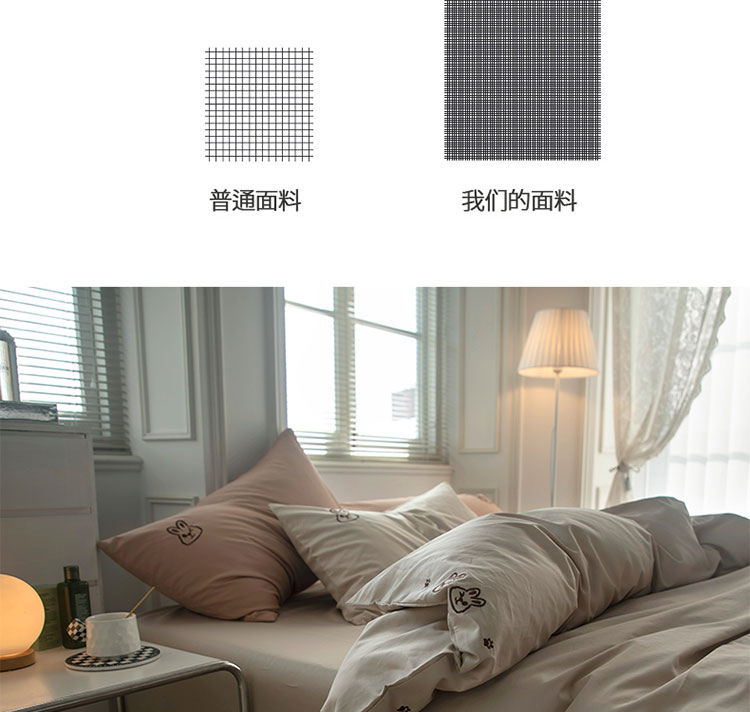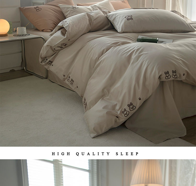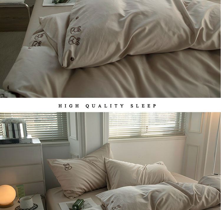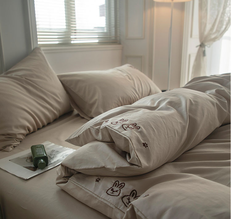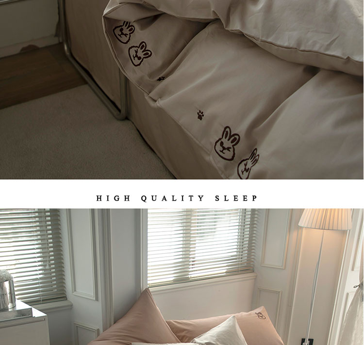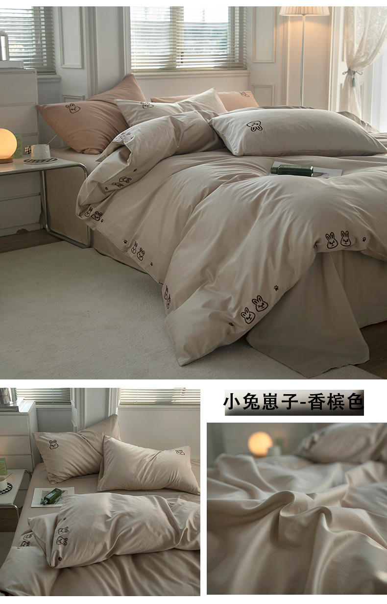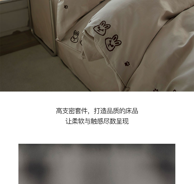 当前位置: 91家纺网 > 商品网购 > 床品套件 > 四件套 > 长绒棉四件套 > 网客家纺 2024新款100支长绒棉兔子绣花四件套 小兔崽子-香槟