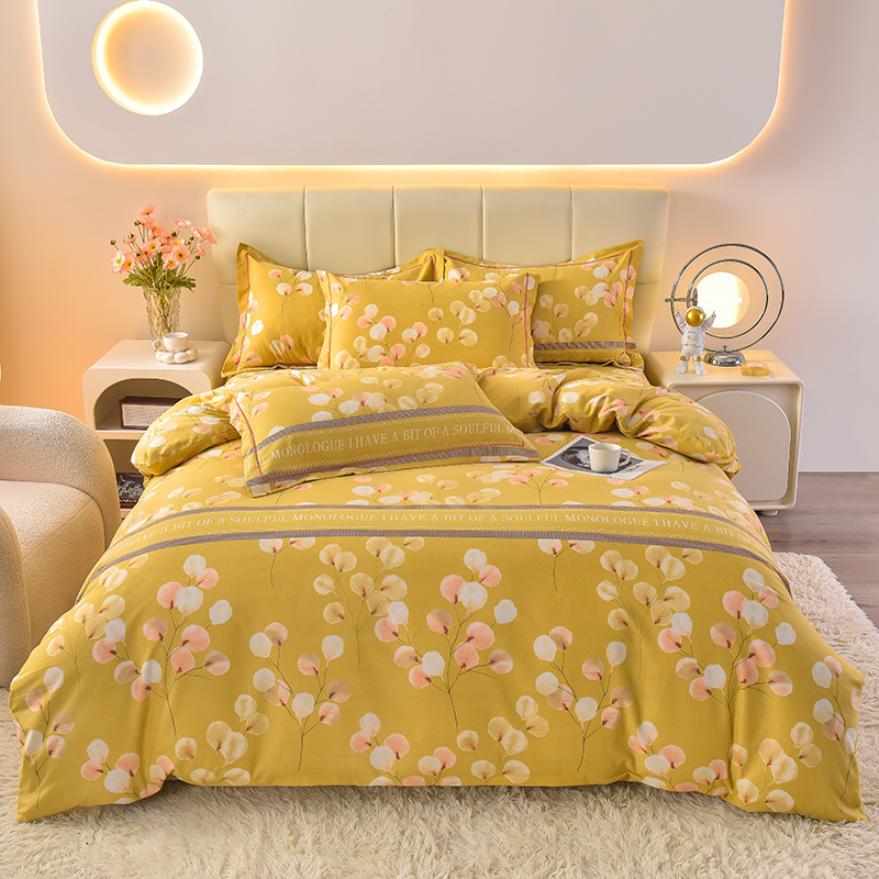 幸嘉轩 2025新款全棉秋冬加厚保暖喷气磨毛纯棉印花四件套 薇薇安-黄,薇薇安-黄