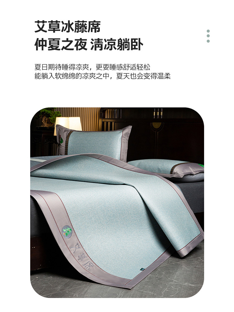 商品名称:(总)简一家纺 2024新款艾草冰藤席艾草凉席 配皮革手提包装