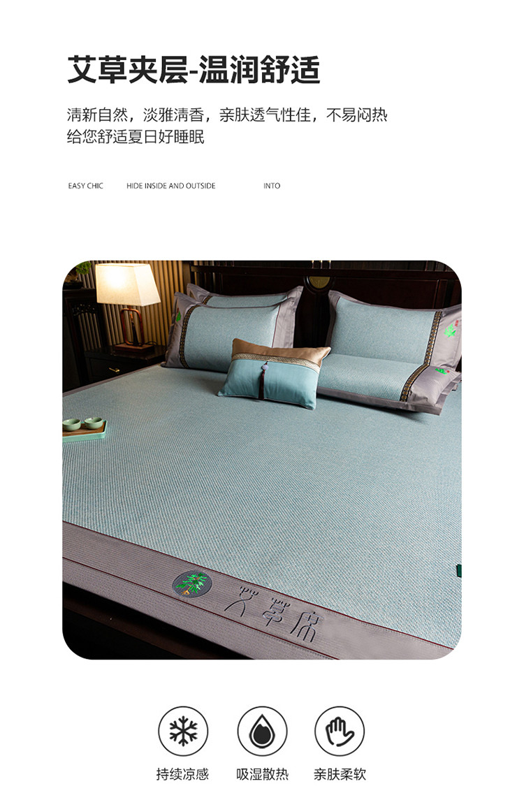 (总)简一家纺 2024新款艾草冰藤席艾草凉席 配皮革手提包装