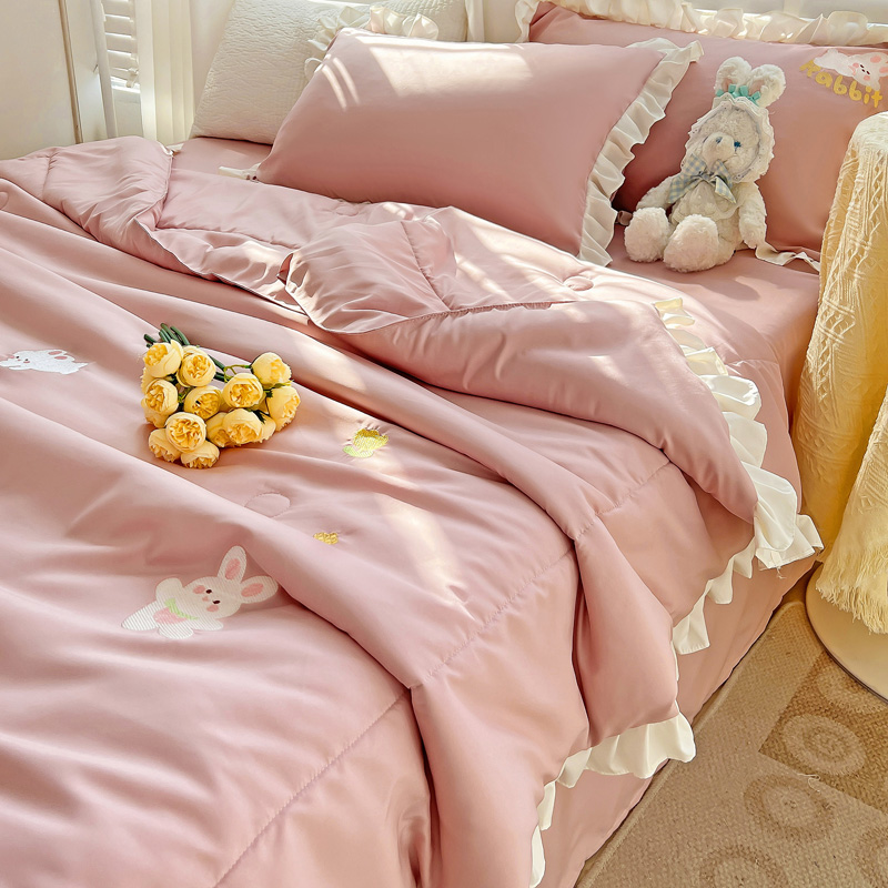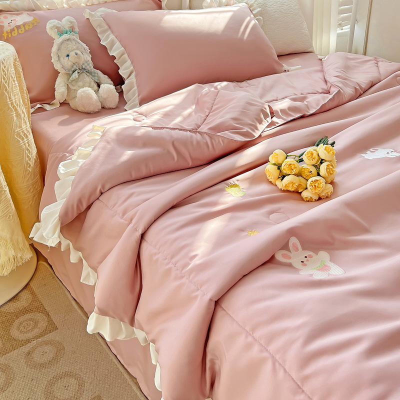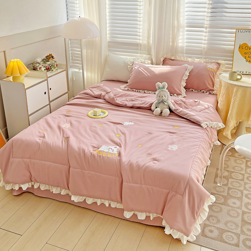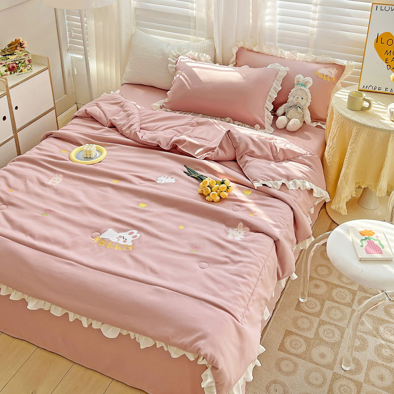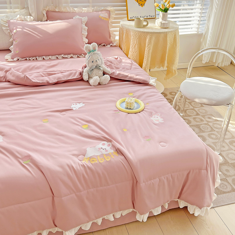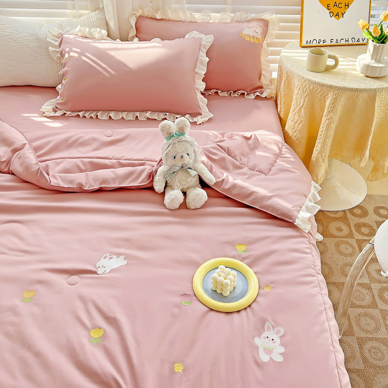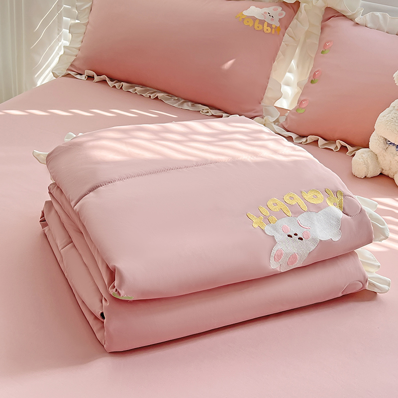 商品名称:寐居 2023水洗天丝棉刺绣夏被 睡眠兔-豆沙