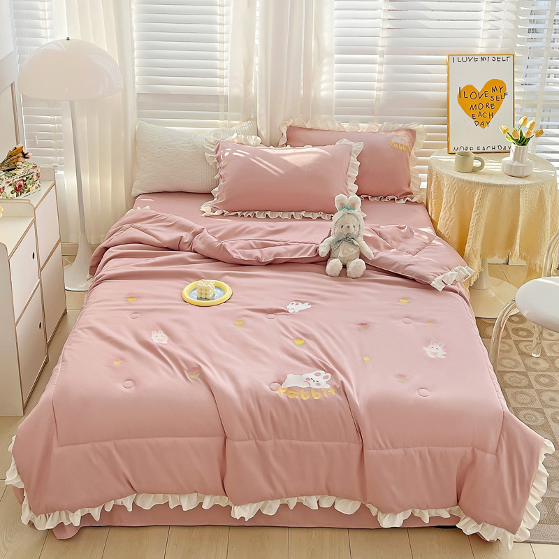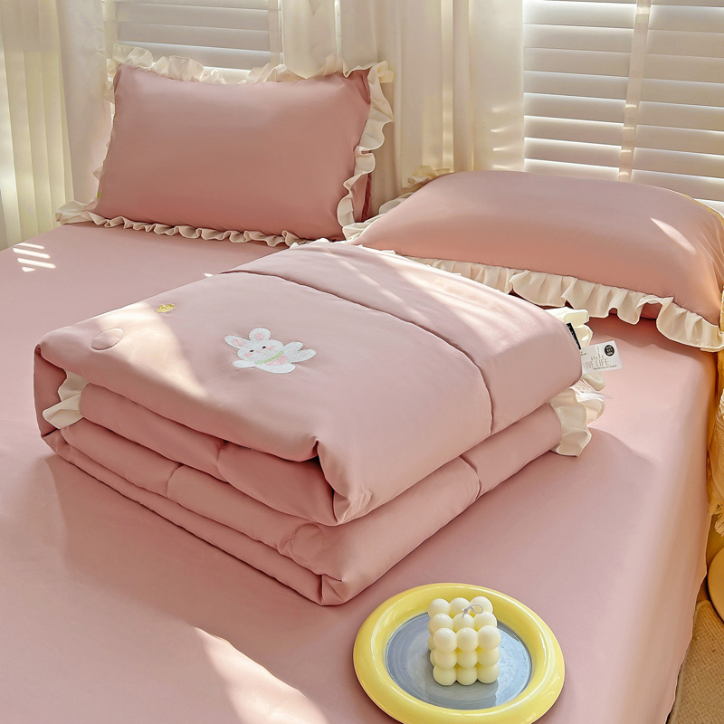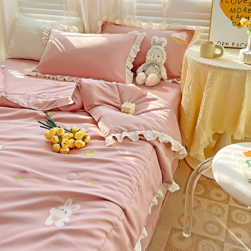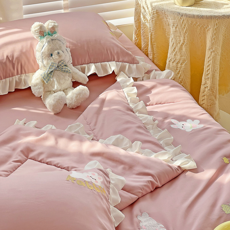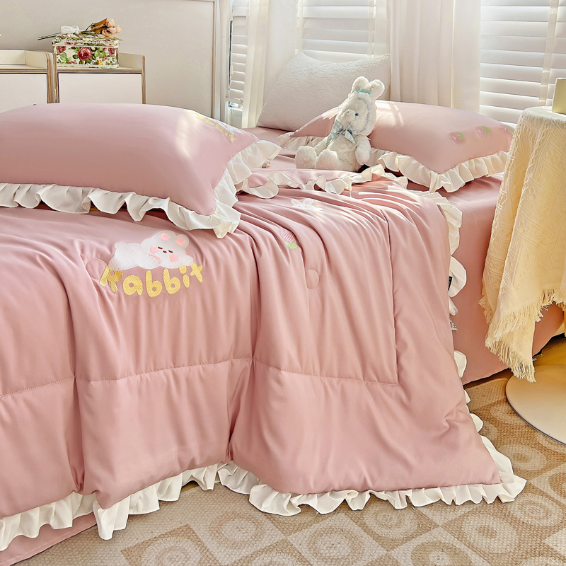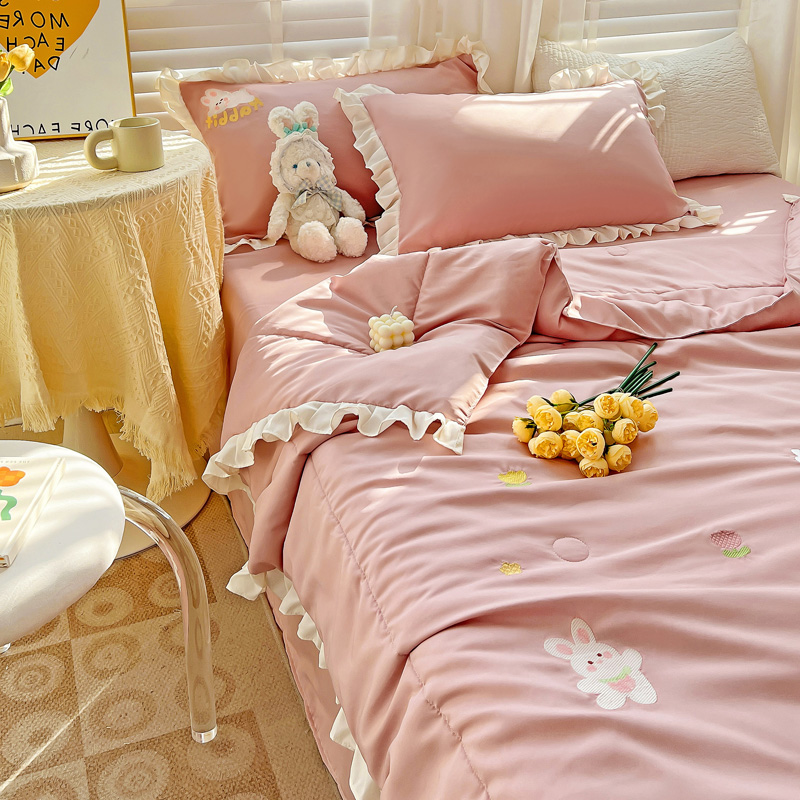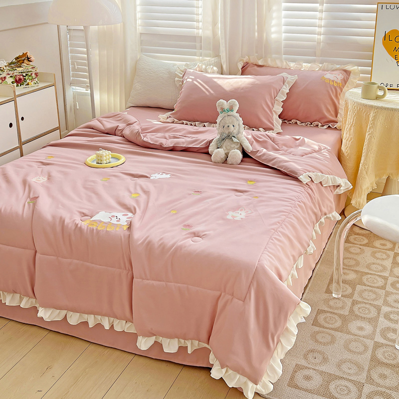 商品名称:寐居 2023水洗天丝棉刺绣夏被 睡眠兔-豆沙