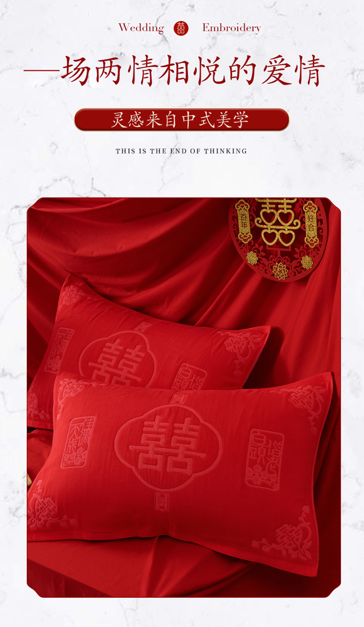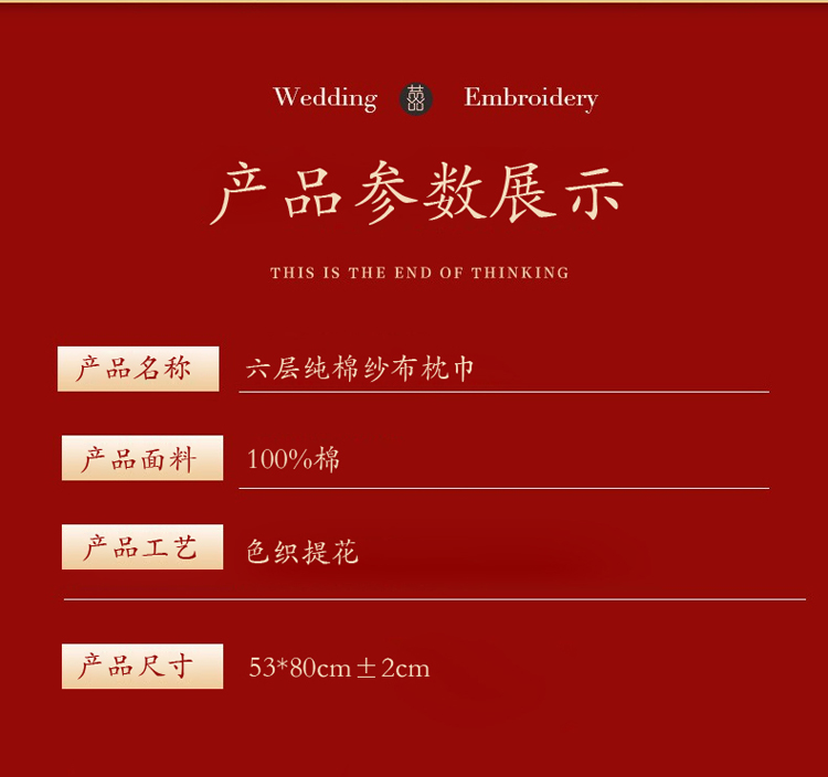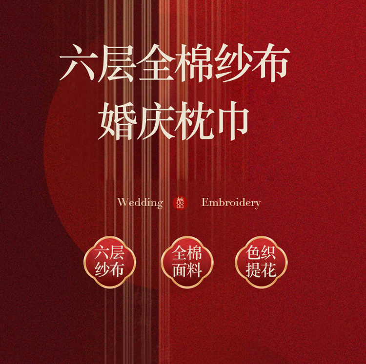 商品名称:棠薇2023结婚枕巾高端婚庆6层纱布全棉纯棉一对装大红色陪嫁新婚枕头巾 白头偕老53x80±2cm
