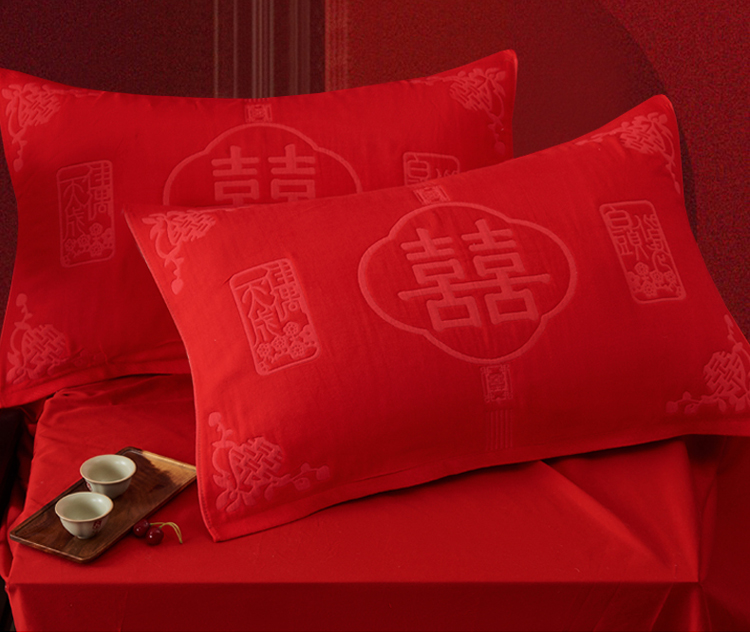 棠薇2023结婚枕巾高端婚庆6层纱布全棉纯棉一对装大红色陪嫁新婚枕头巾 白头偕老53x80±2cm