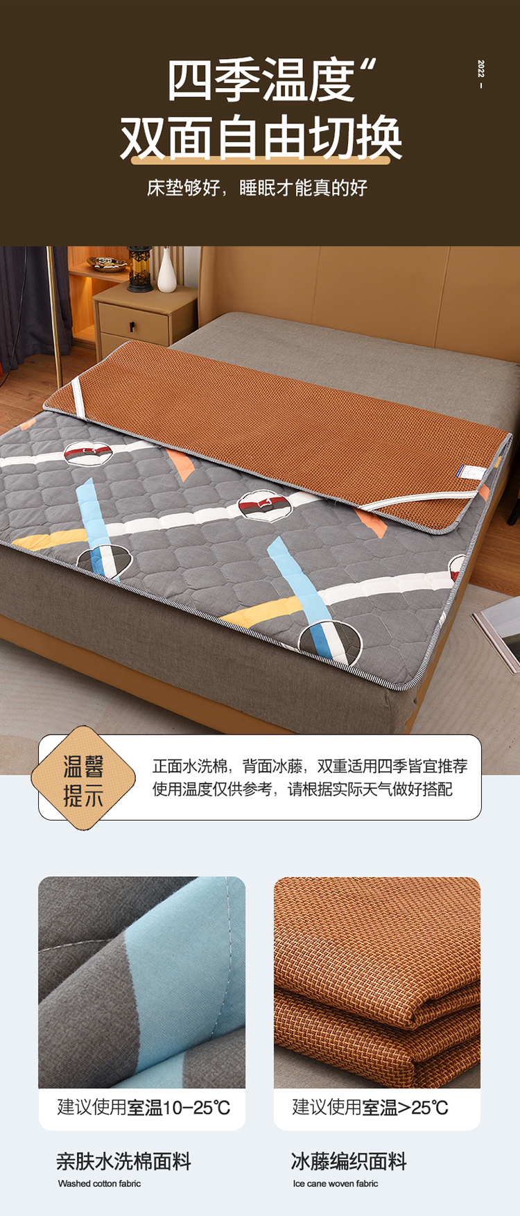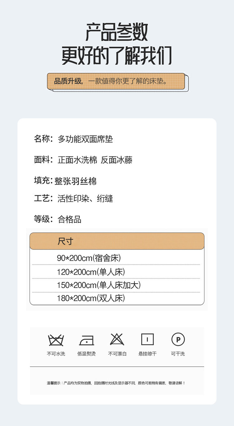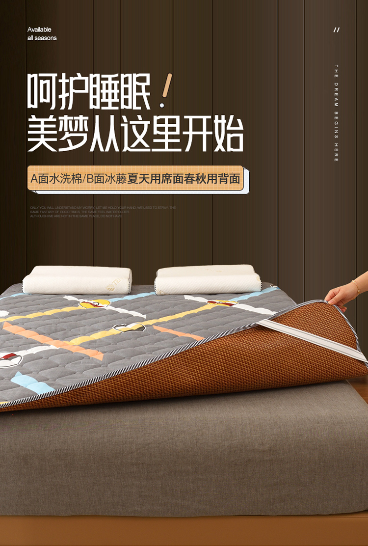 当前位置: 91家纺网 > 商品网购 > 床垫/床褥 > 功能床垫 > 张先生2024水洗棉冰藤席双面2cm厚床垫 拼小圈