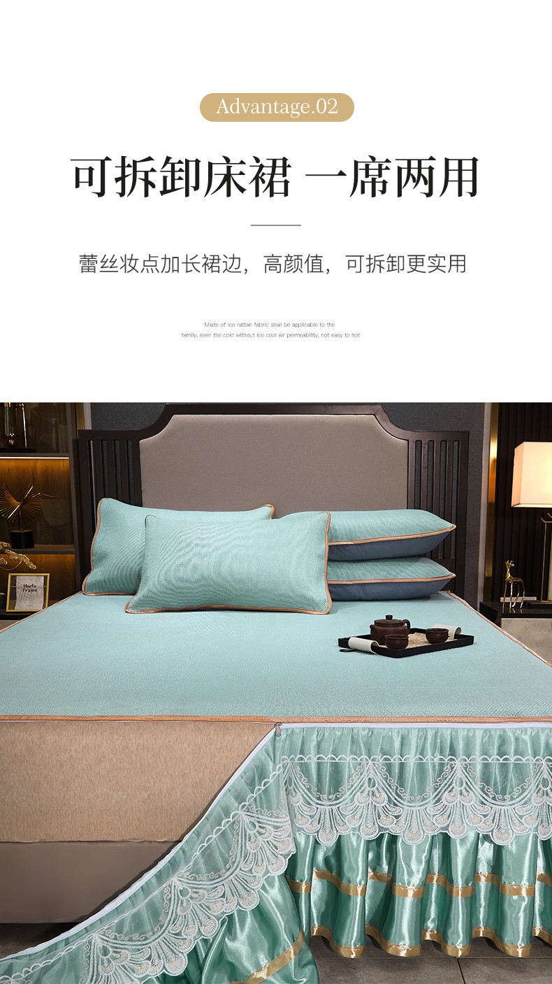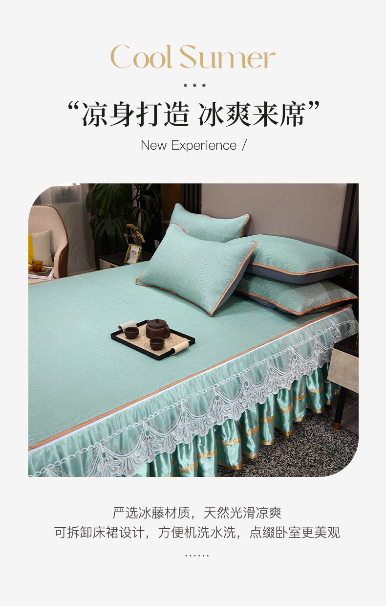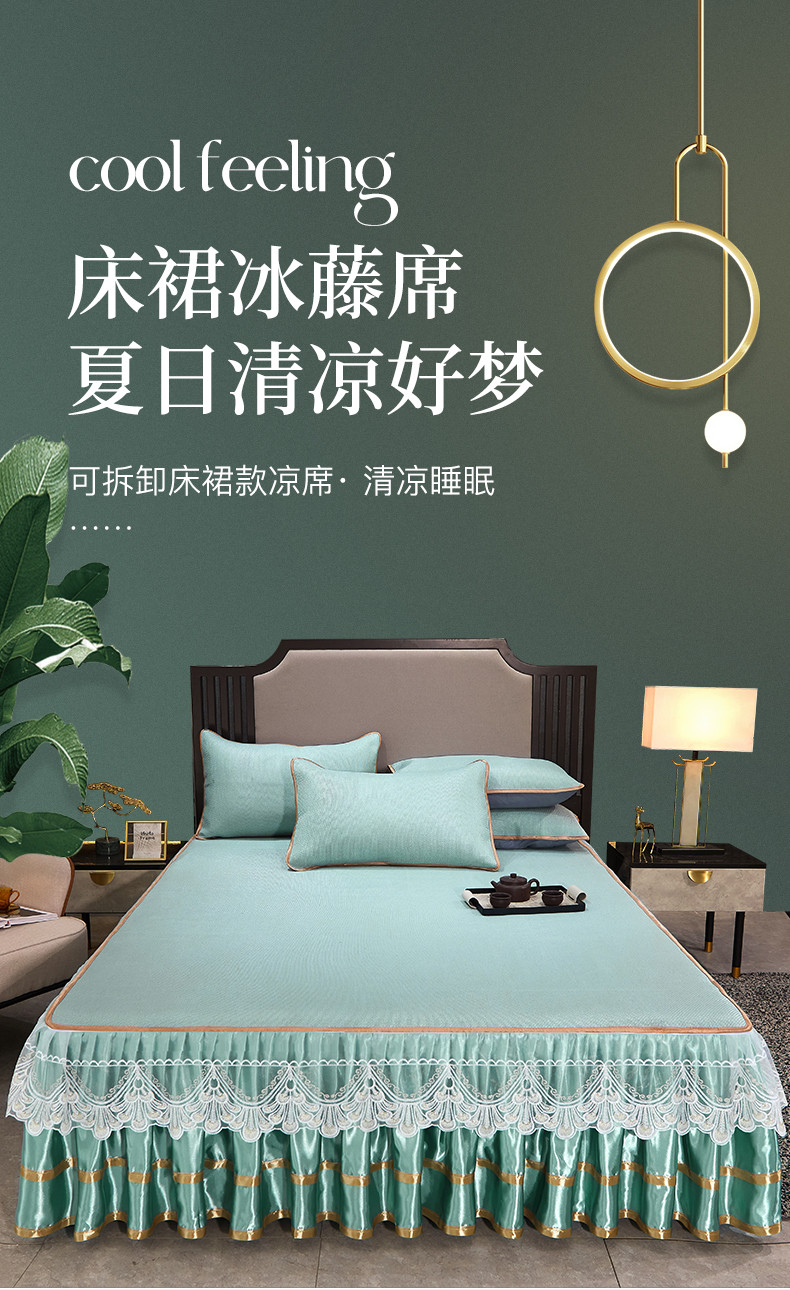 商品名称:罗艺轩 2024新款可拆卸床裙款冰藤席 富贵旺族-薄荷