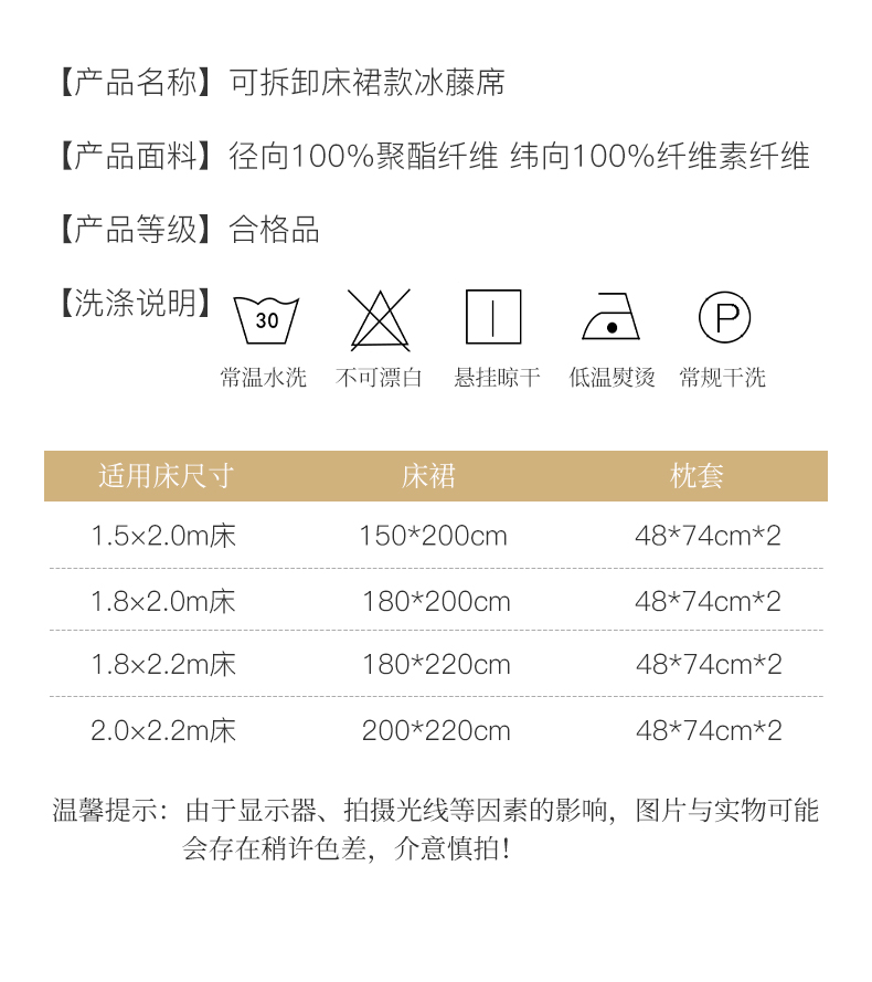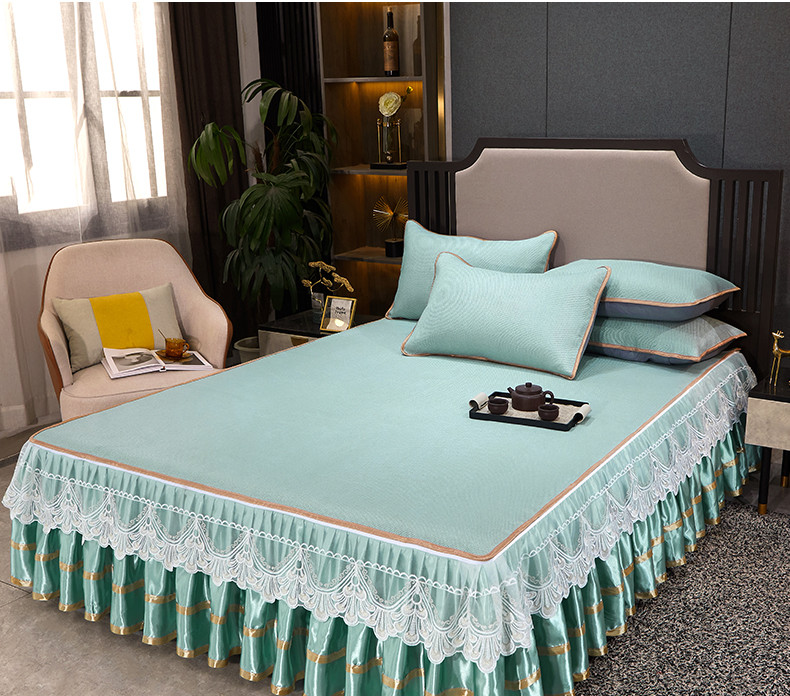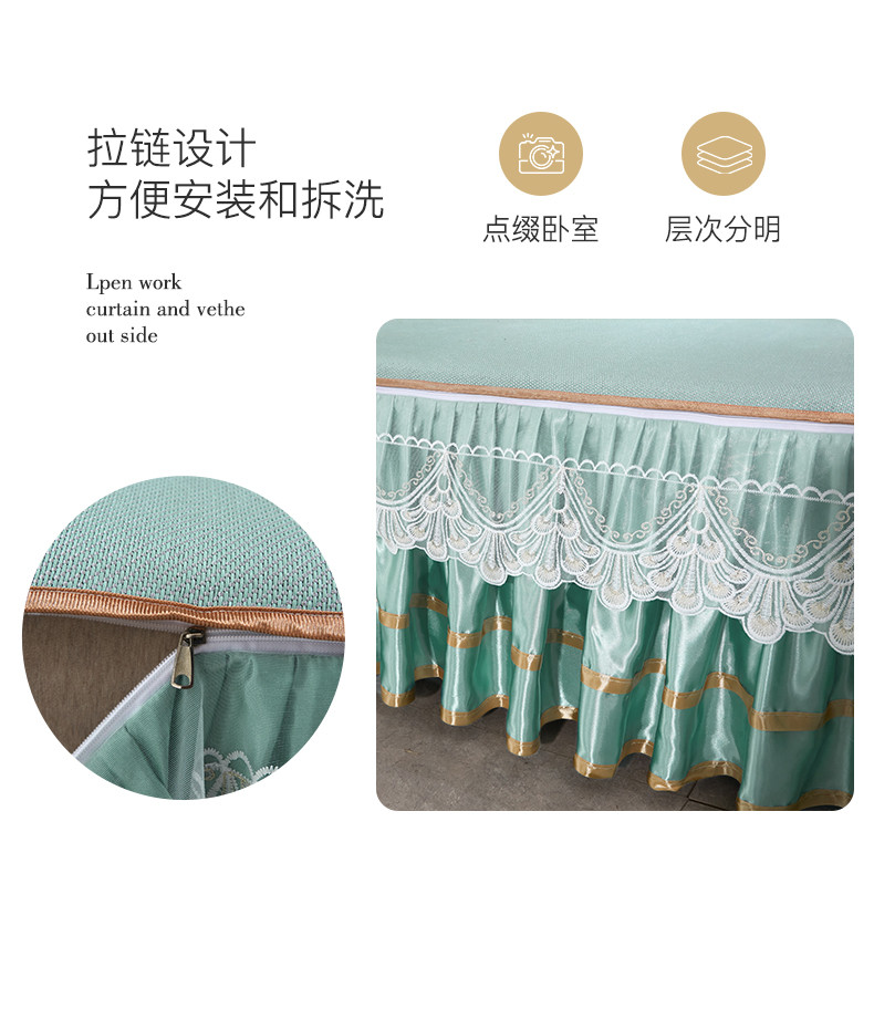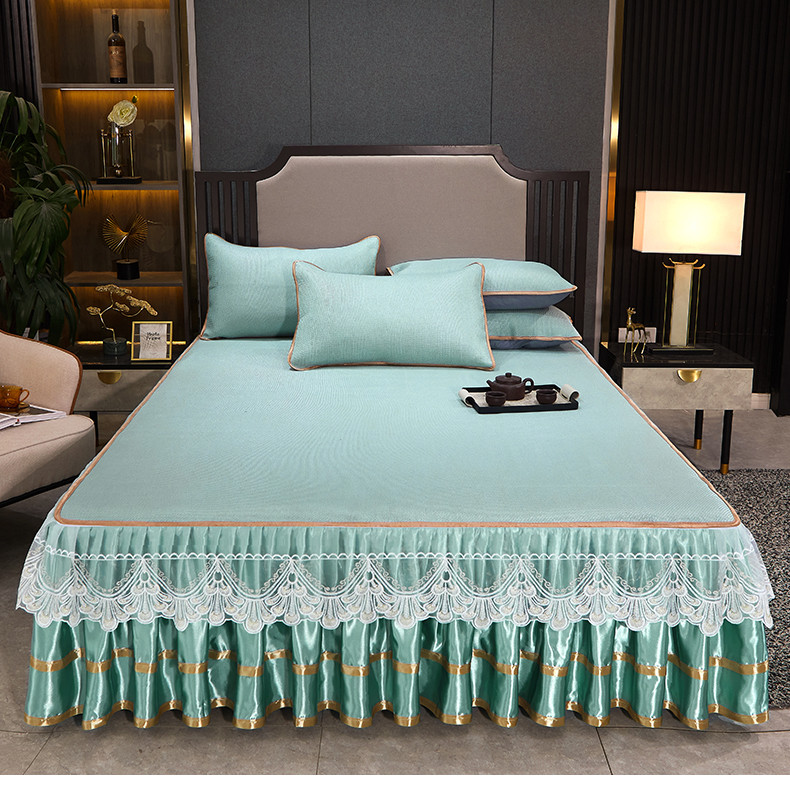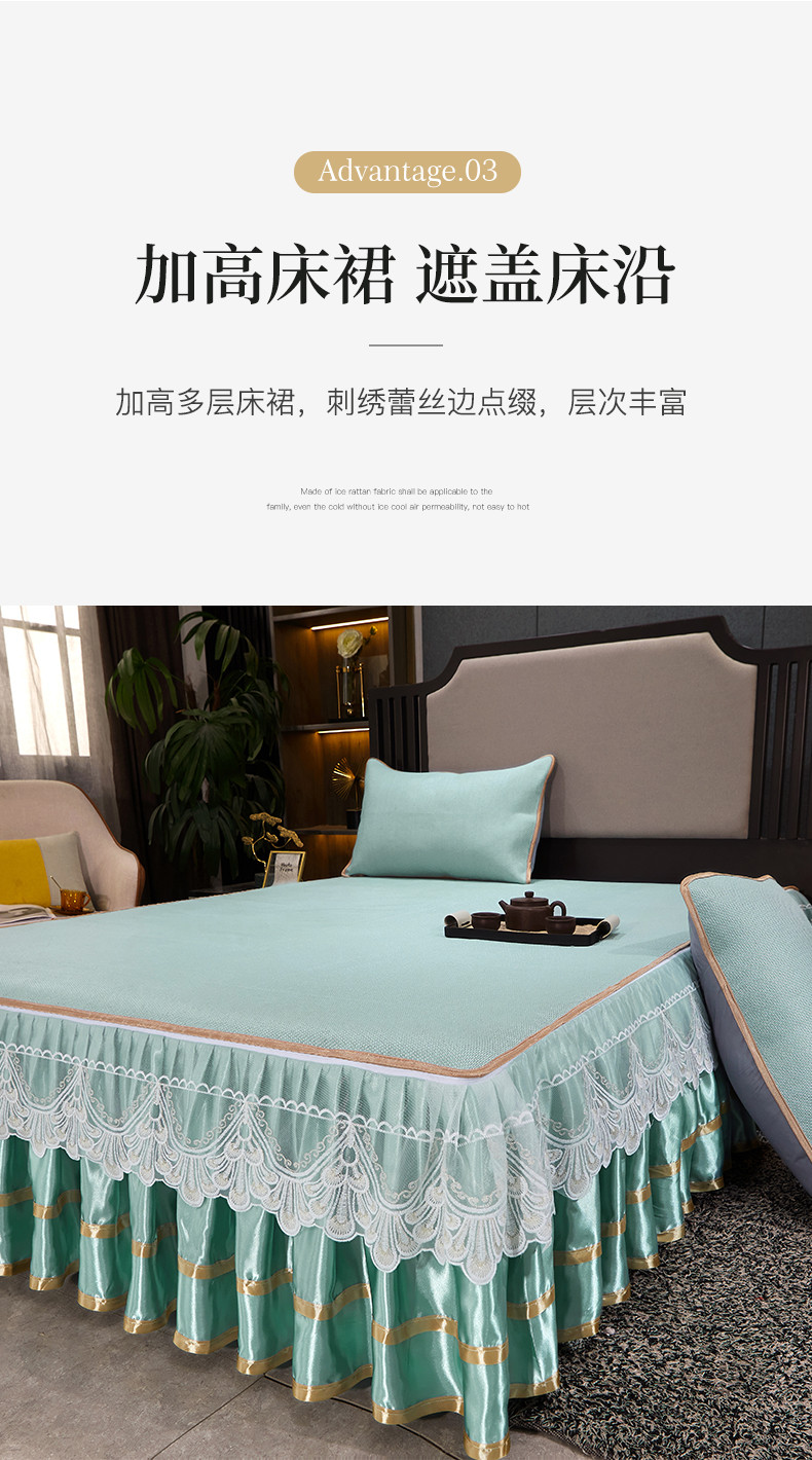 商品名称:罗艺轩 2024新款可拆卸床裙款冰藤席 富贵旺族-薄荷