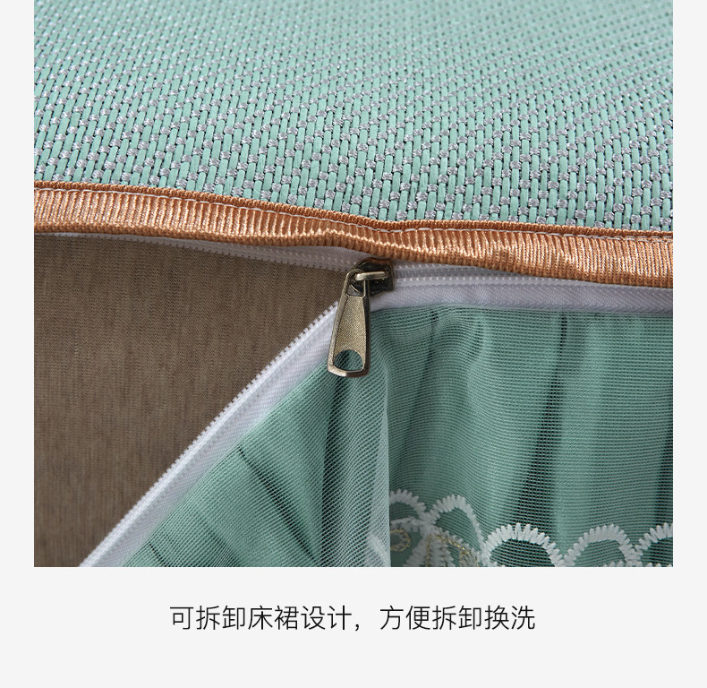 罗艺轩 2024新款可拆卸床裙款冰藤席 富贵旺族-薄荷