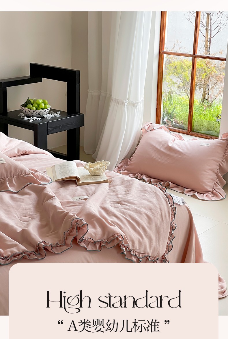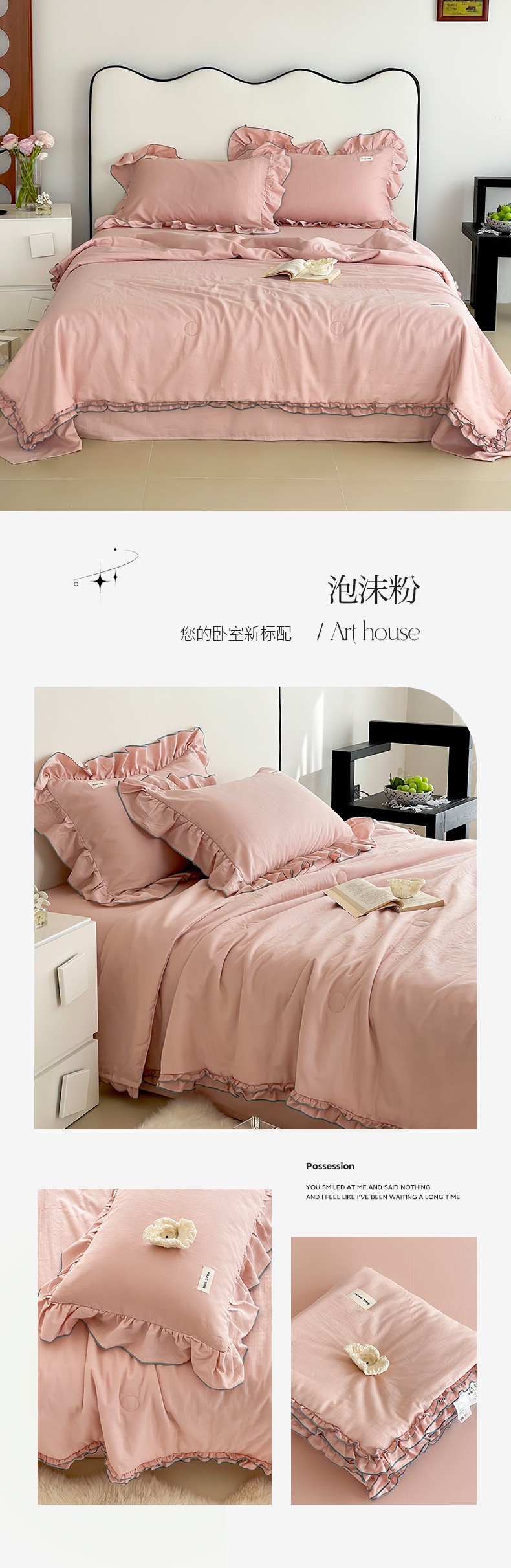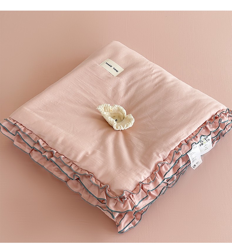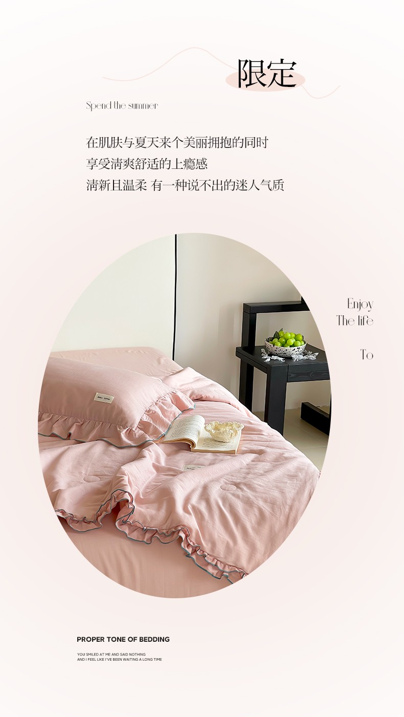 商品名称:荣轩 2023新款素色双层纱夏被-花边款 泡沫粉