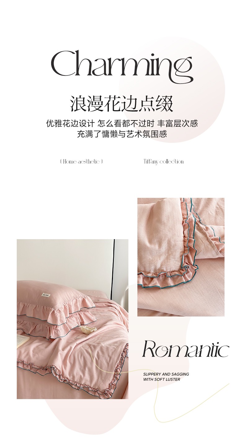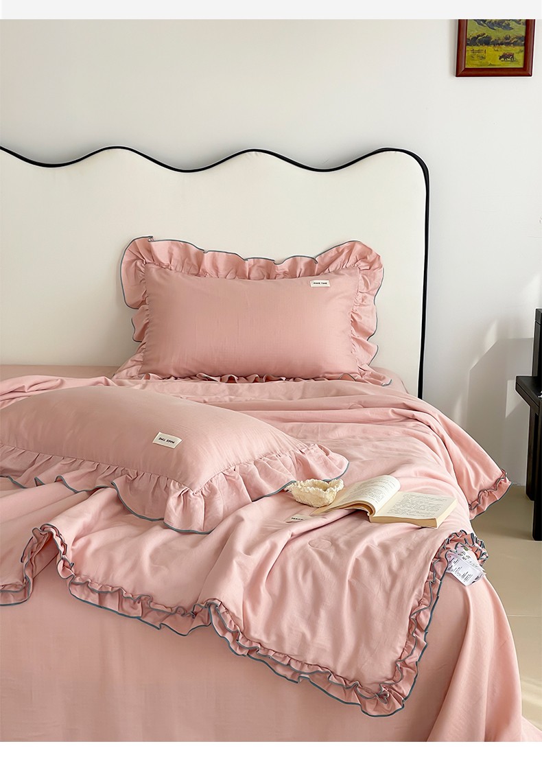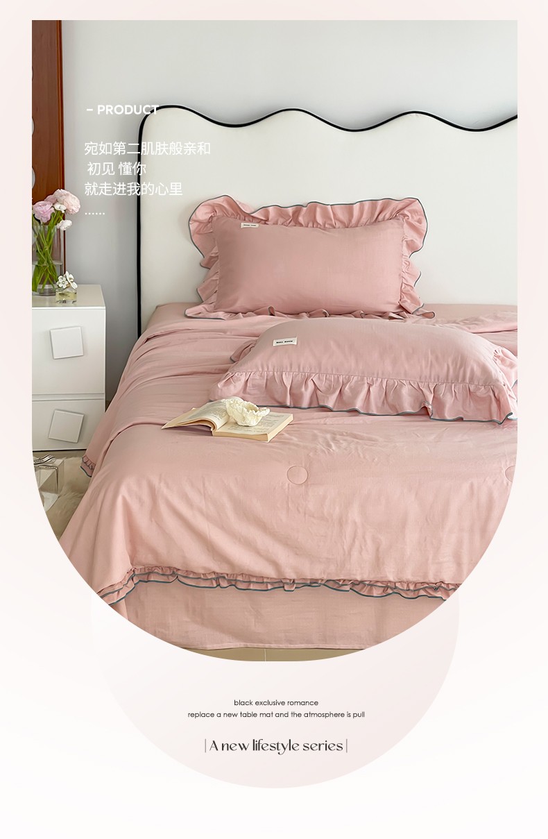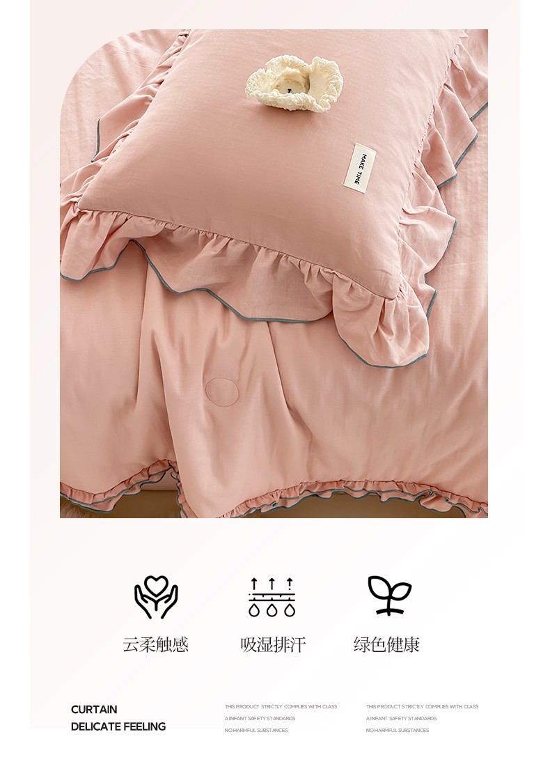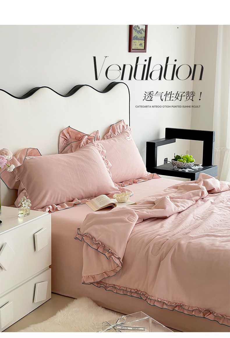 商品名称:荣轩 2023新款素色双层纱夏被-花边款 泡沫粉