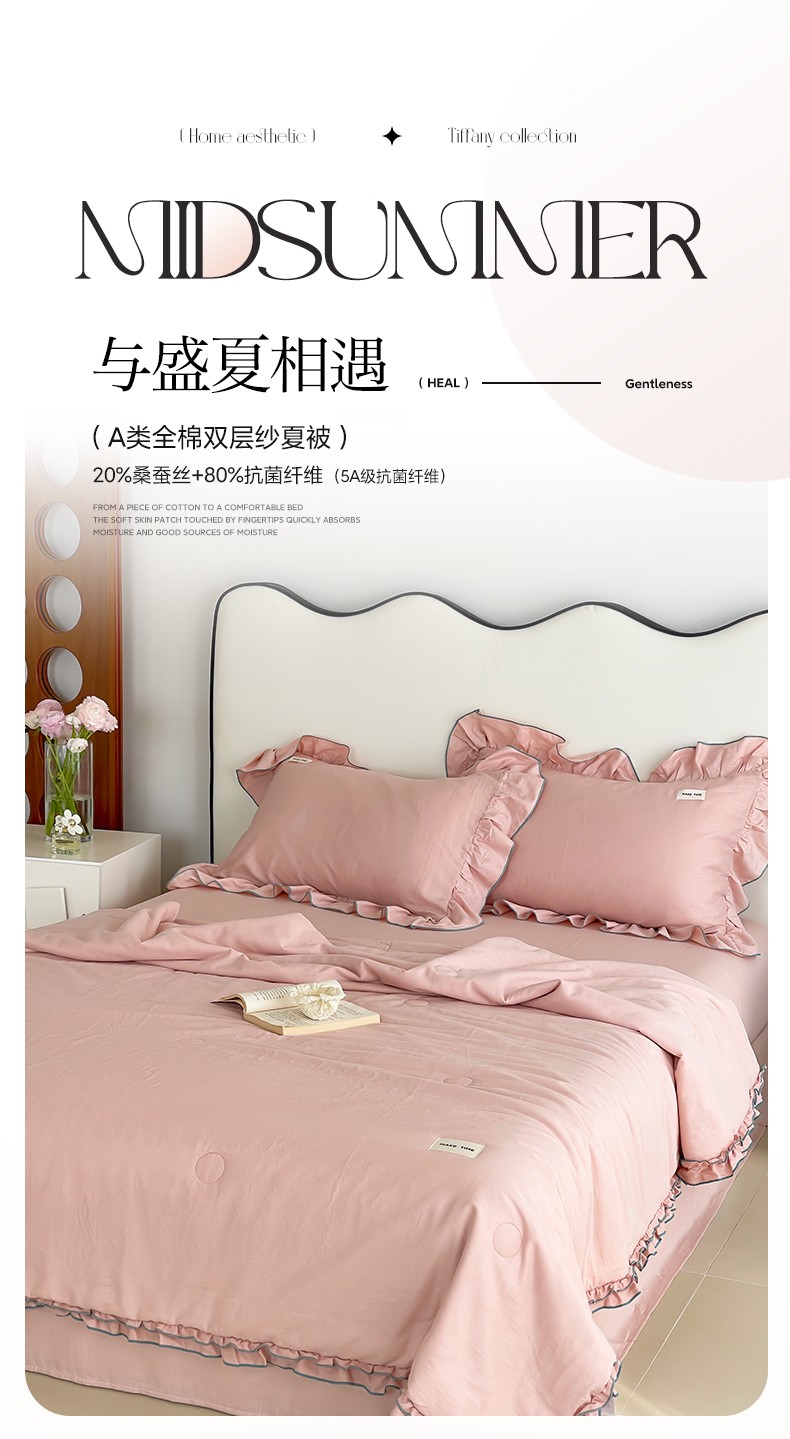 荣轩 2023新款素色双层纱夏被-花边款 泡沫粉