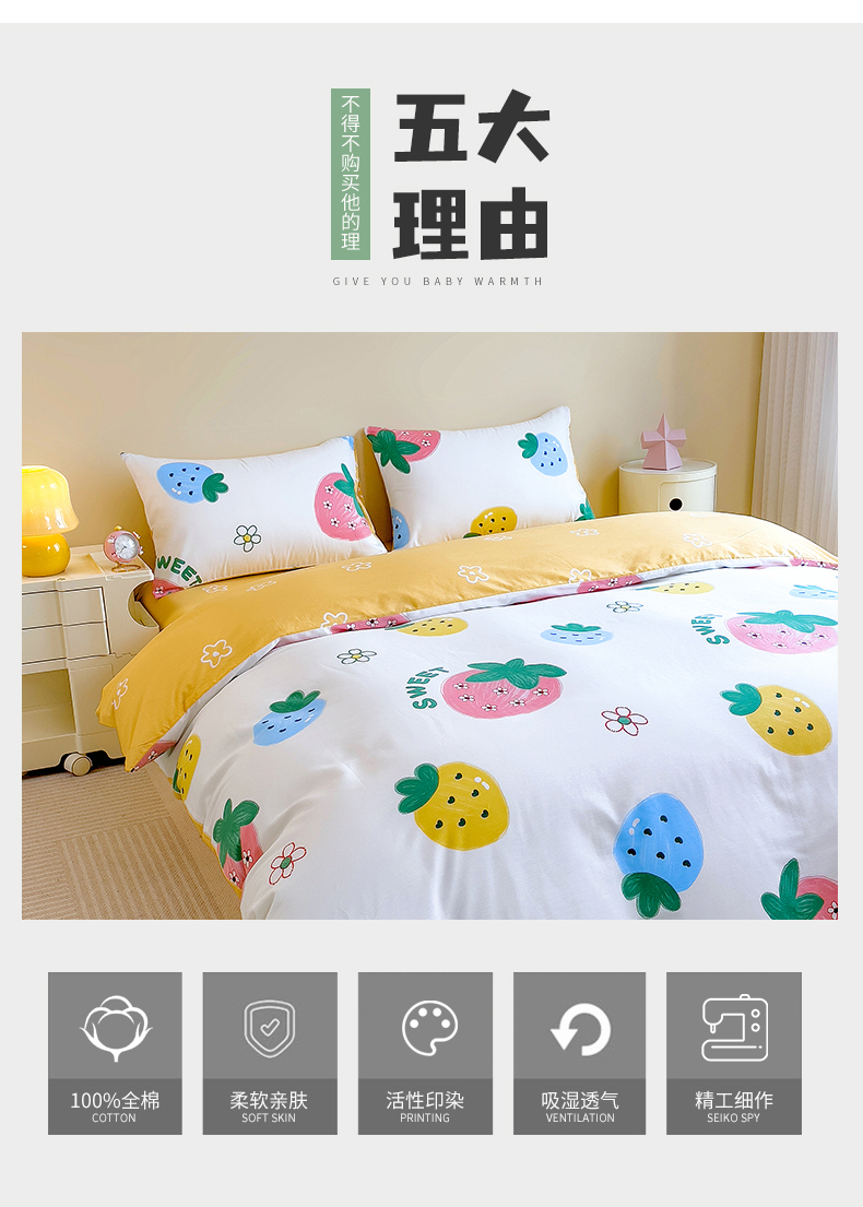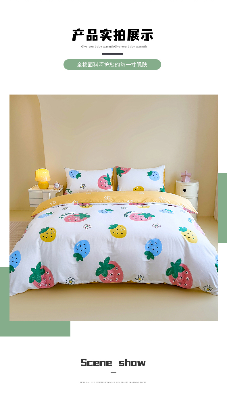 芃成家纺 2023新款全棉13070四件套 草莓之恋