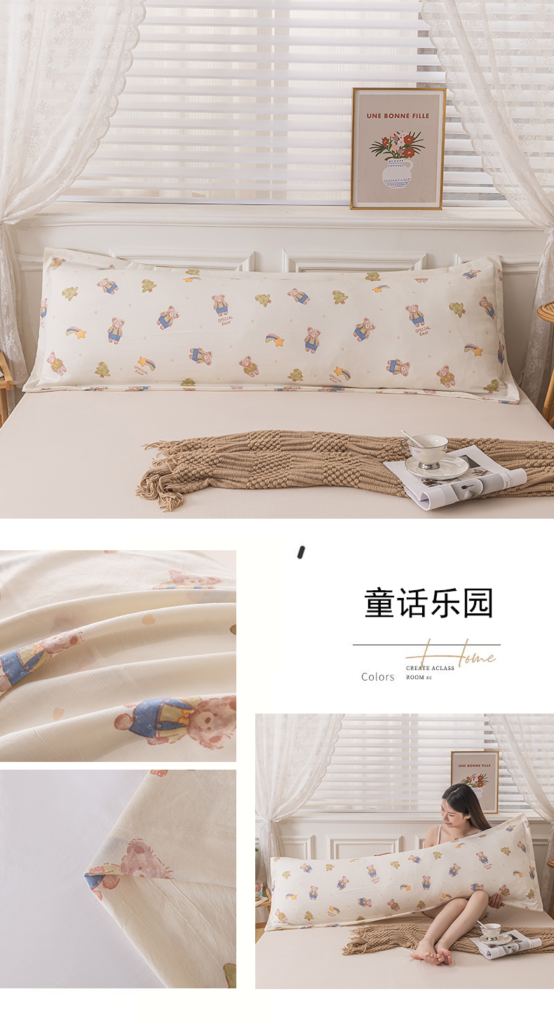 商品名称:新款水洗棉麻单人枕头套亲肤双人枕套 童话乐园