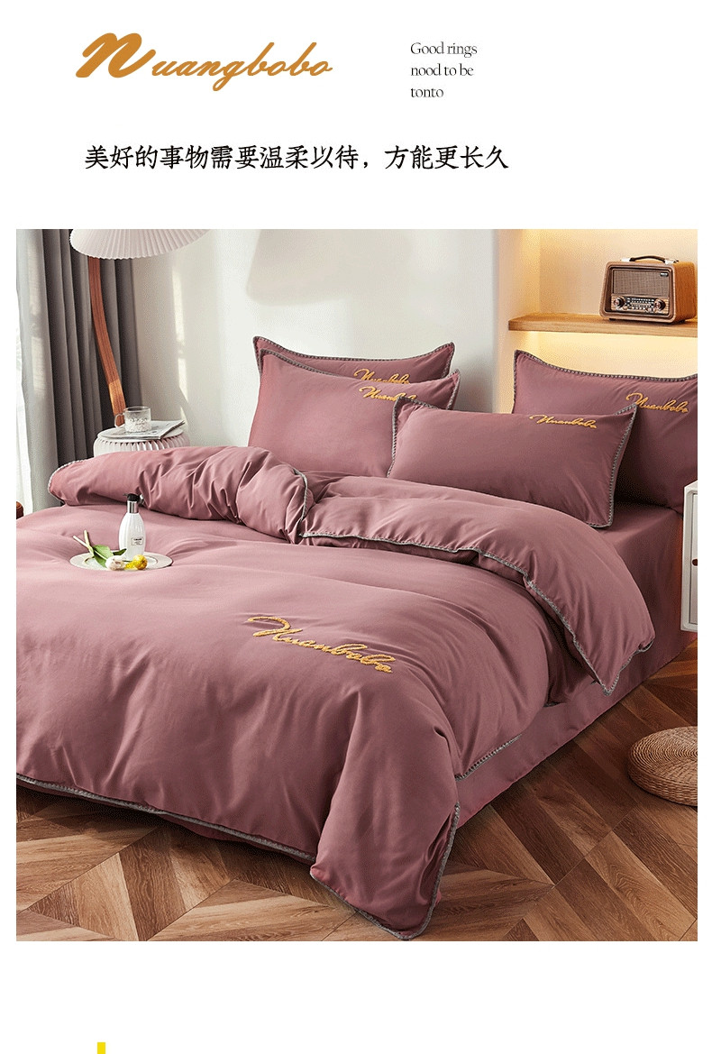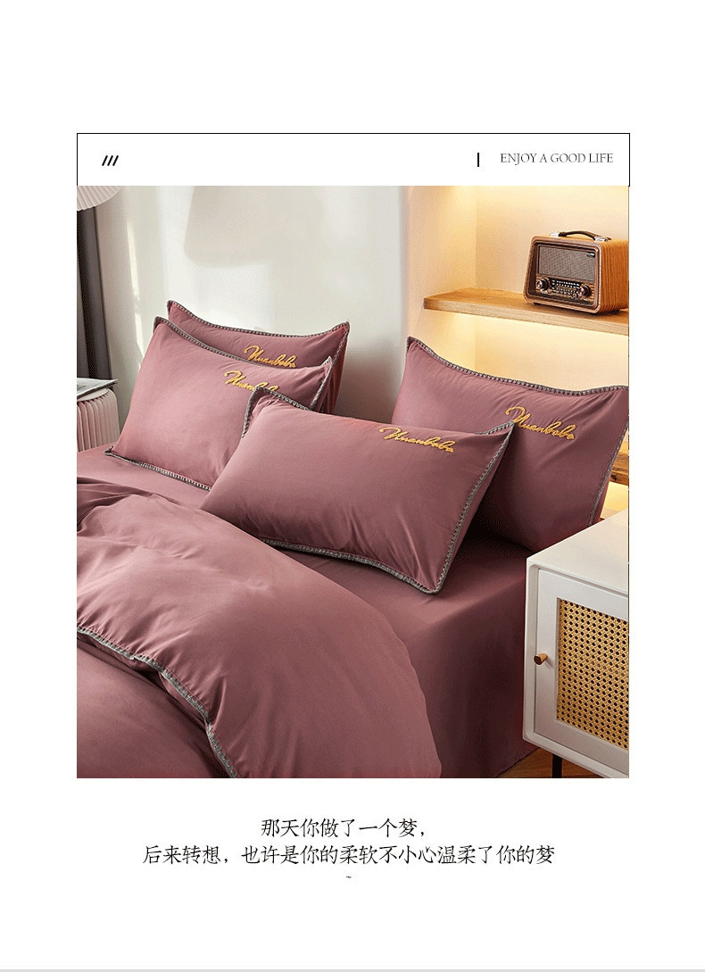 (总)啊雅家居 2026新款民宿宾馆酒店客栈缎条四件套,缎条飞边款,缎条双针拉链款