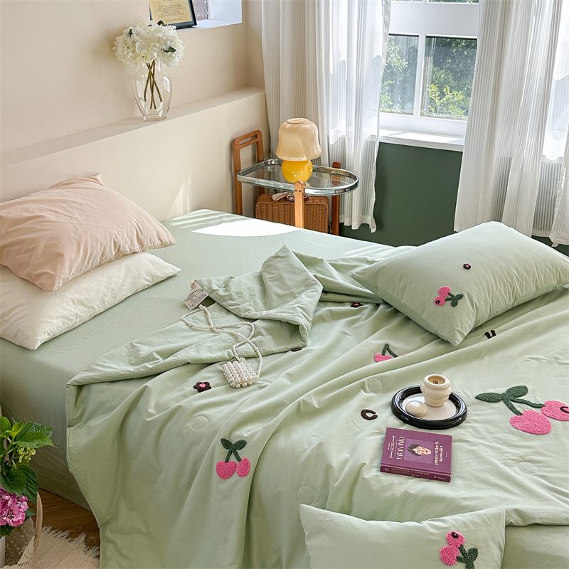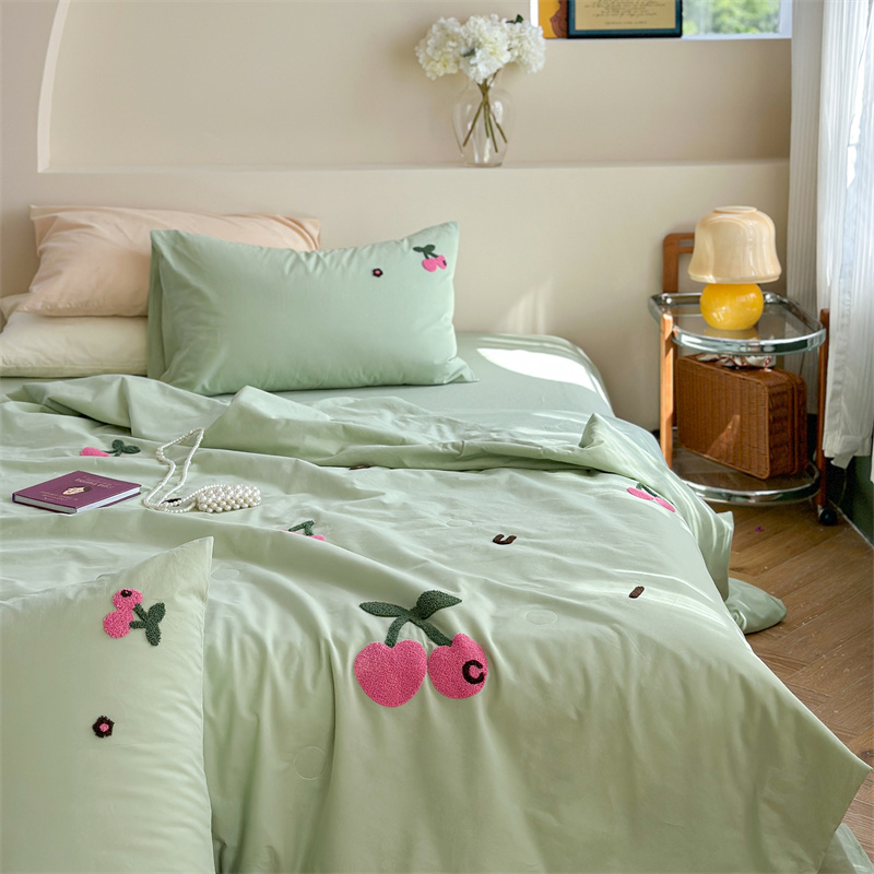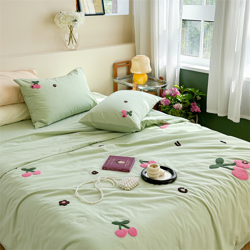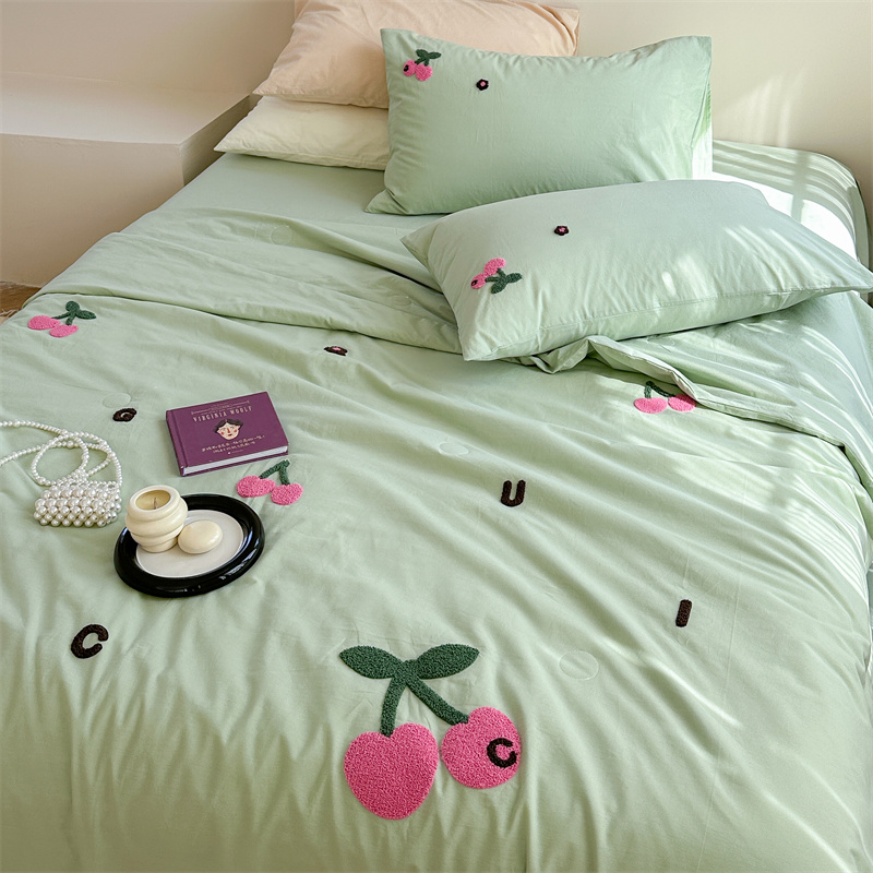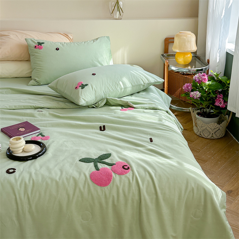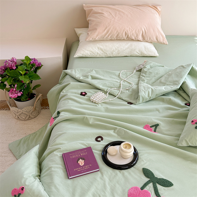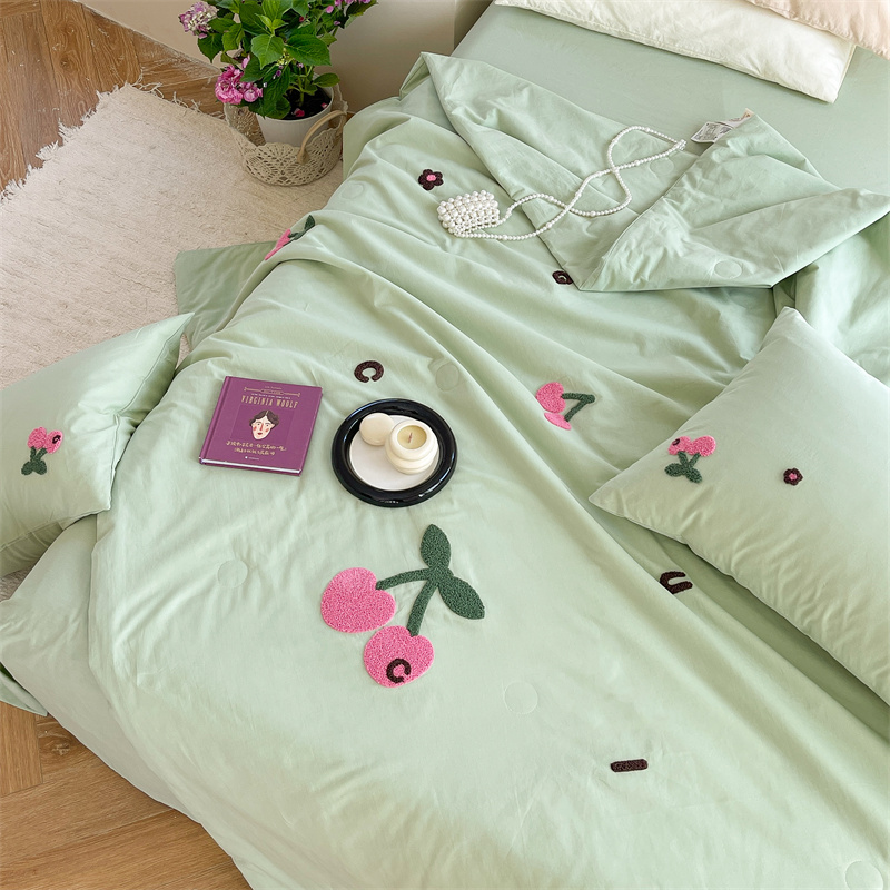 商品名称:柚子YOUTH 2023新款马卡龙全棉水洗棉毛巾绣夏被四件套 红樱桃