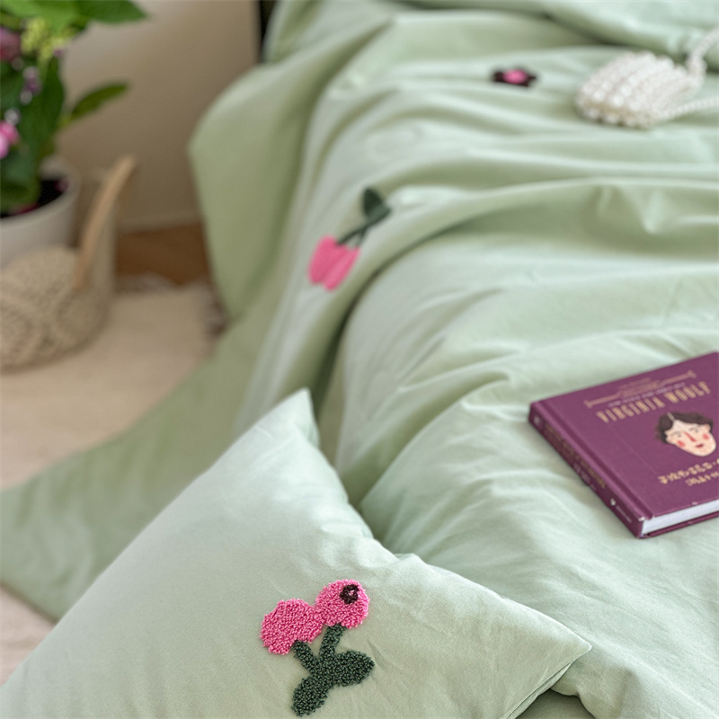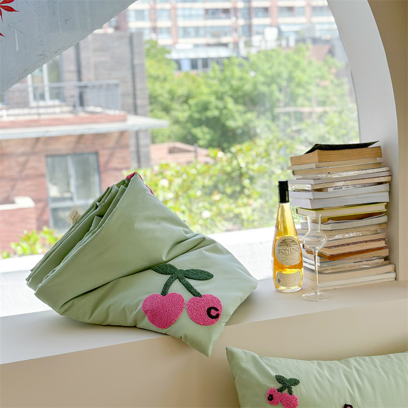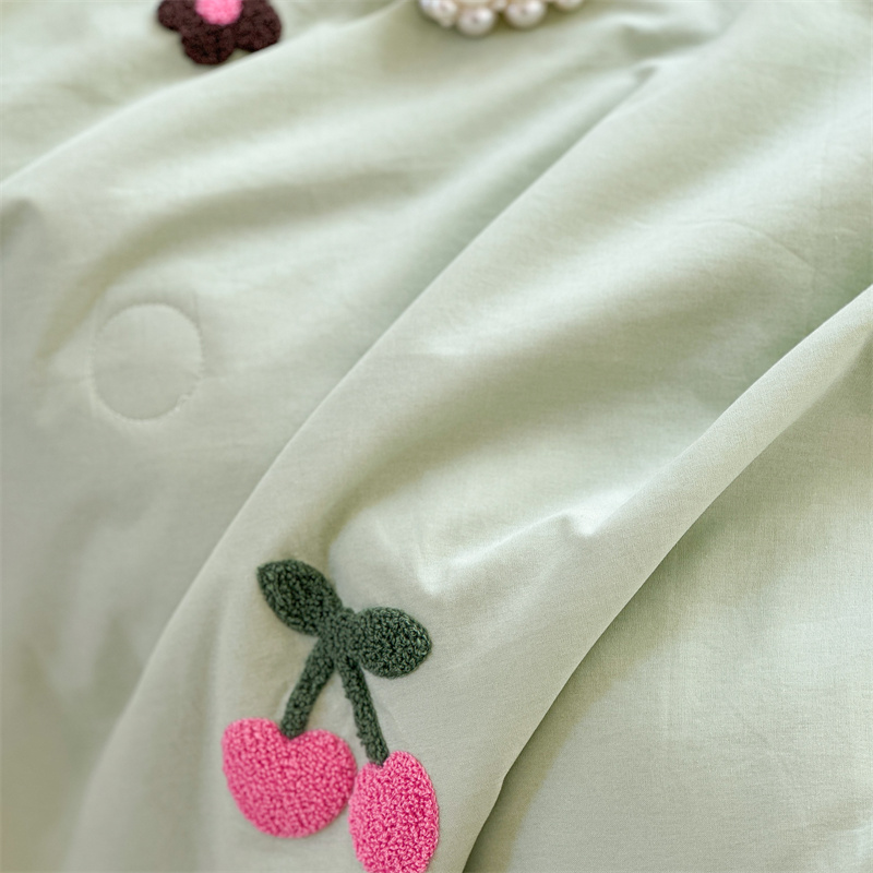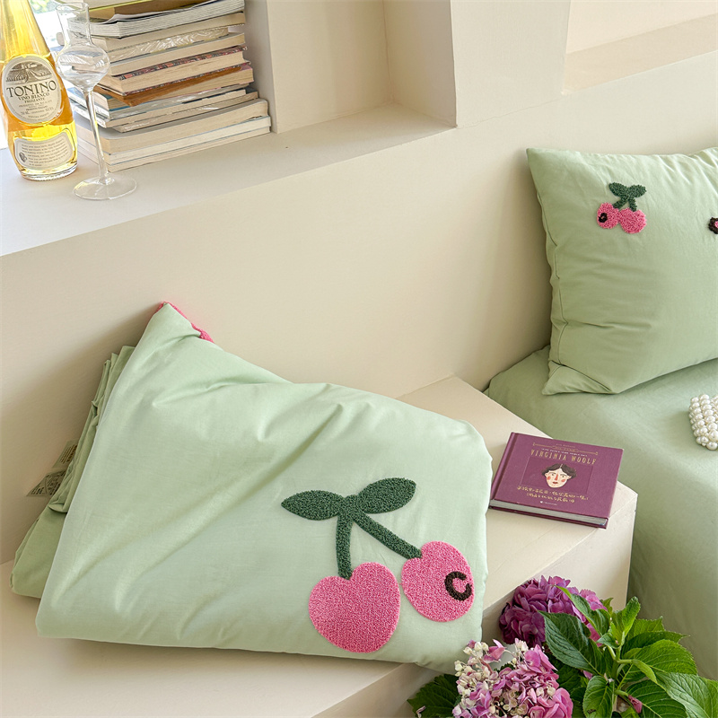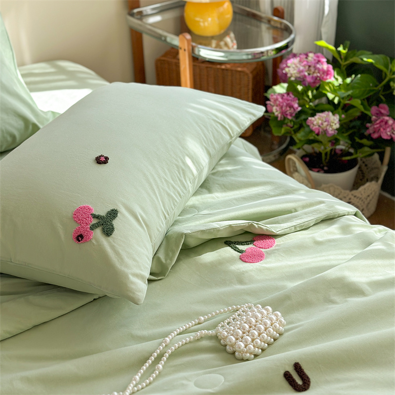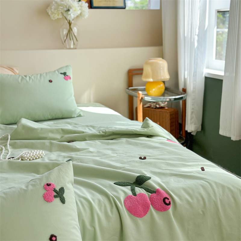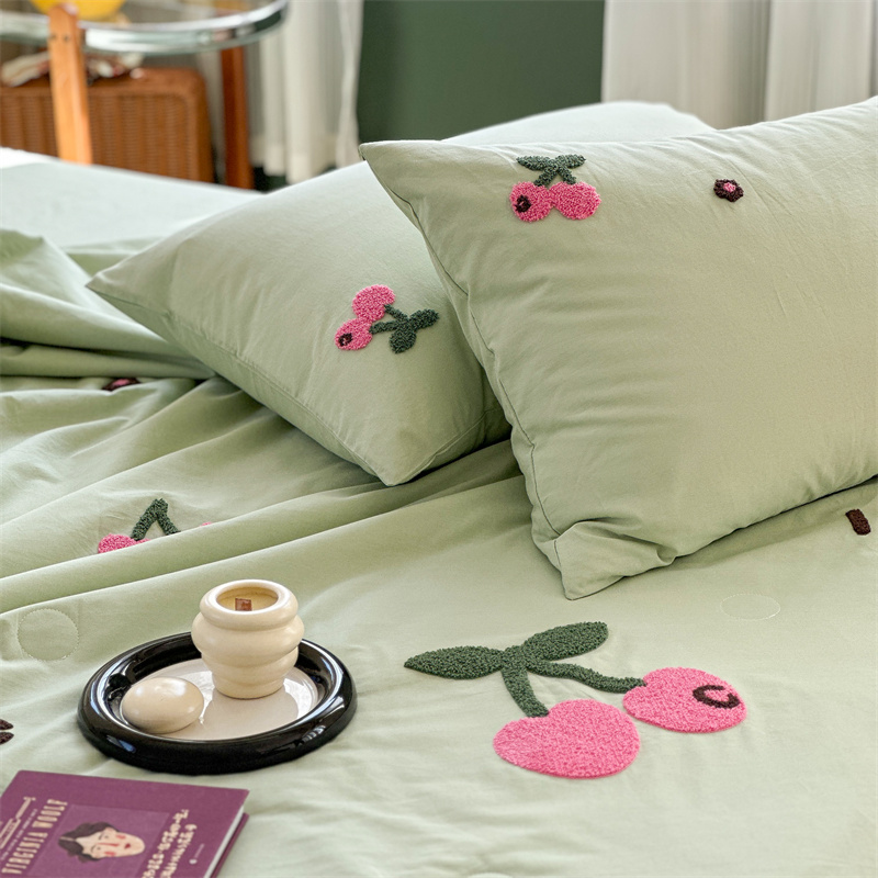 商品名称:柚子YOUTH 2023新款马卡龙全棉水洗棉毛巾绣夏被四件套 红樱桃