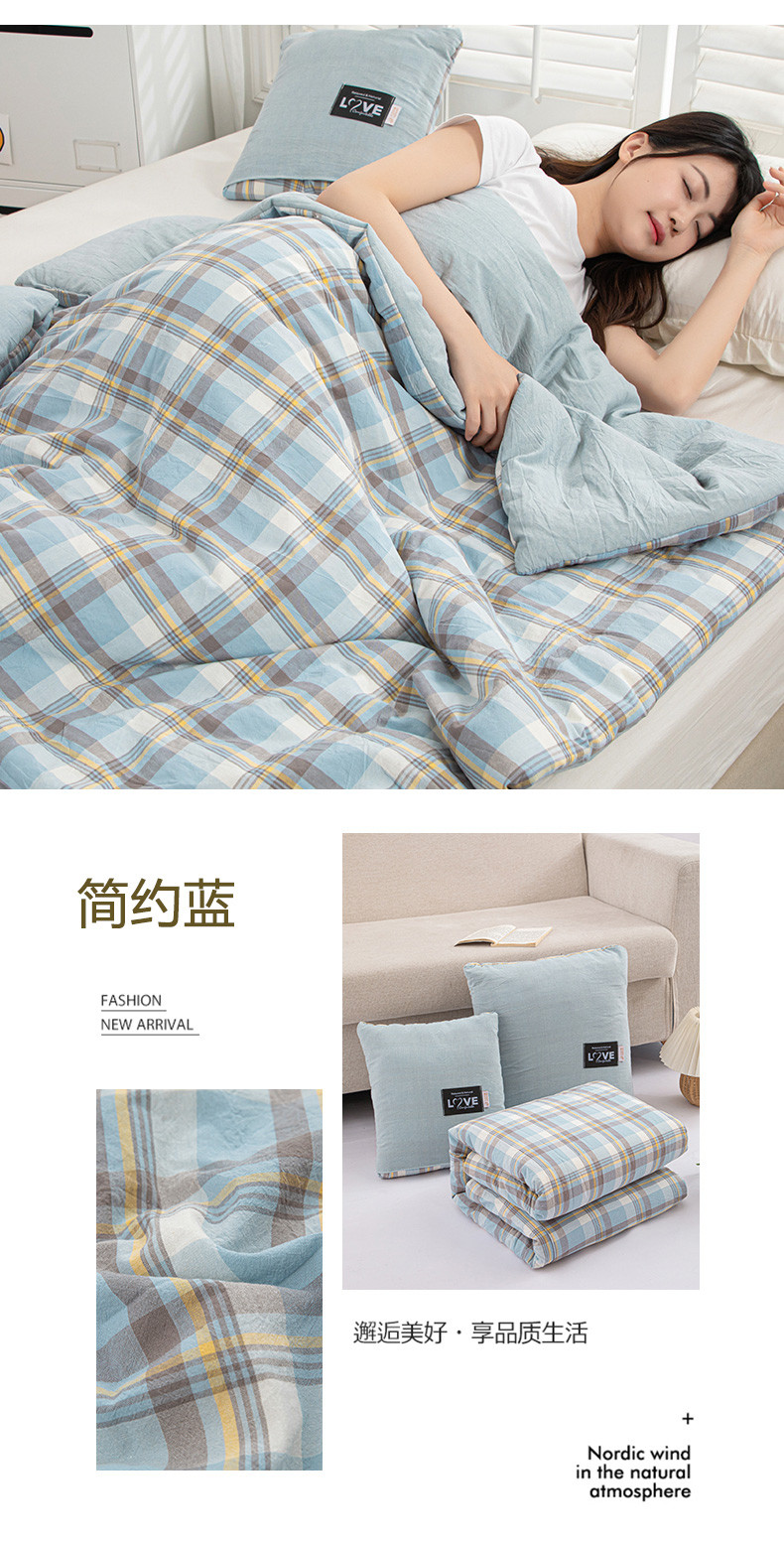 商品名称:翰轩家居 2023新款全棉色织水洗棉大豆抱枕被 简约蓝