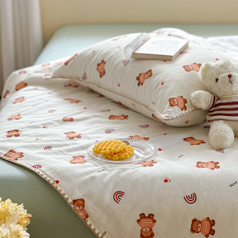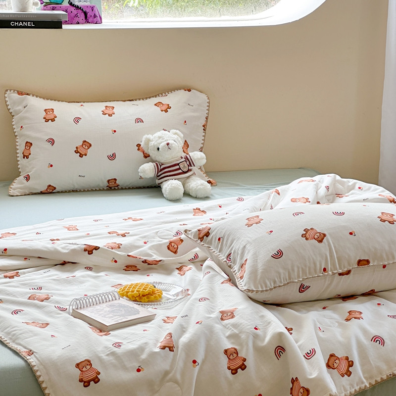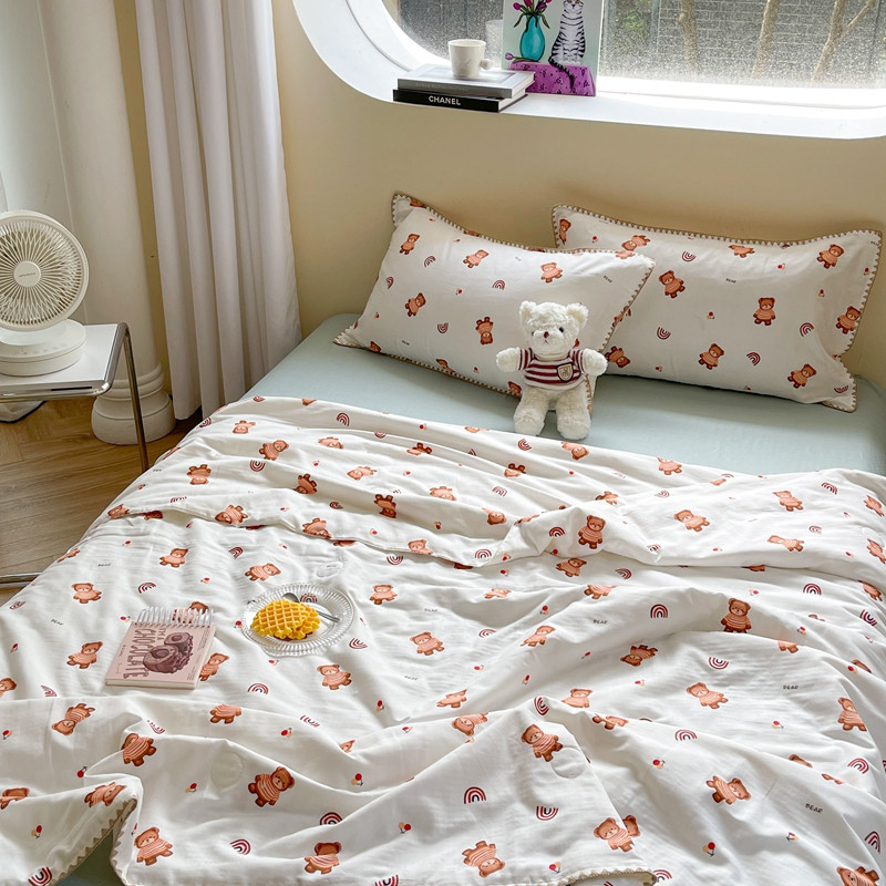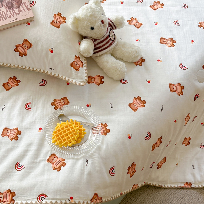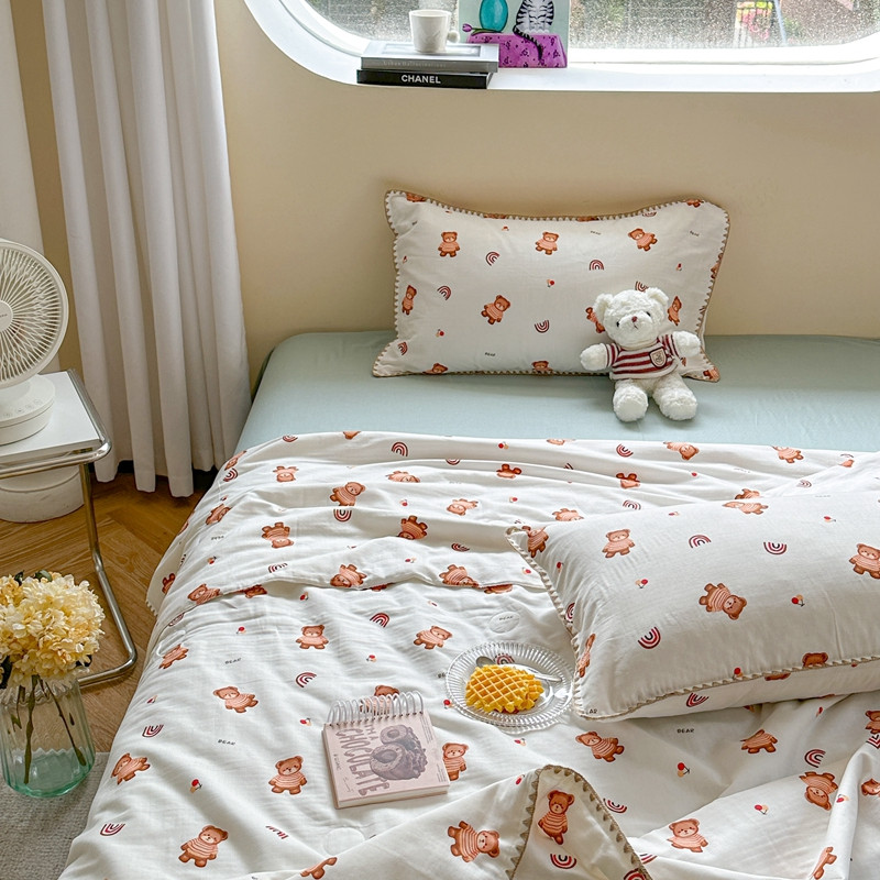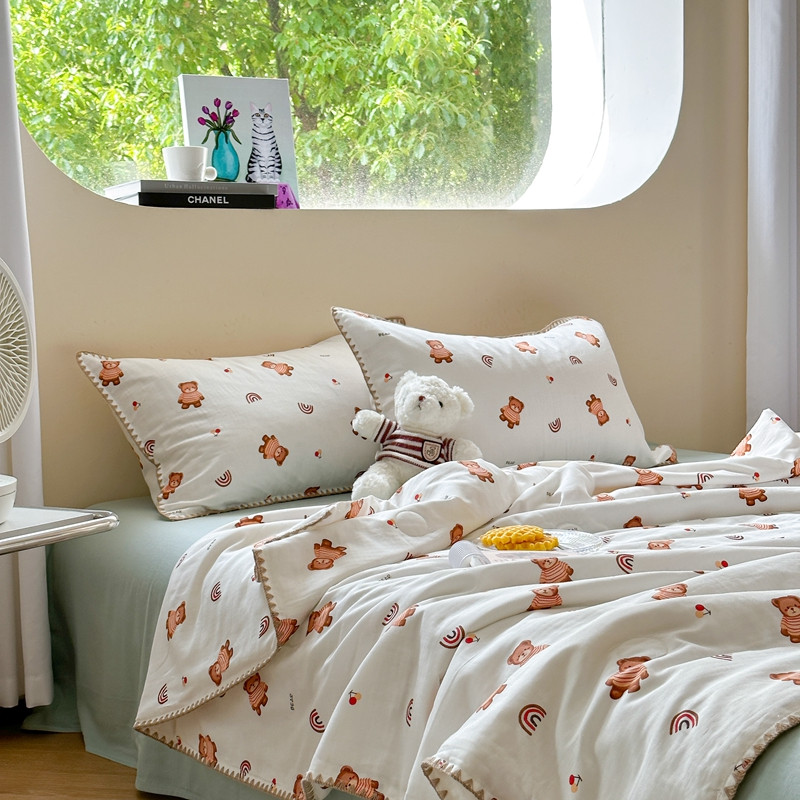 商品名称:柚子 2023新款全棉有氧双层纱夏被四件套 草莓熊