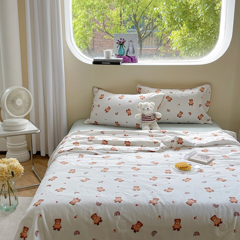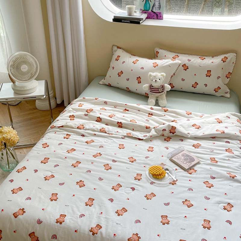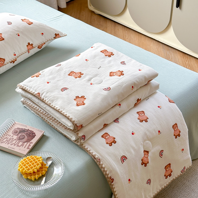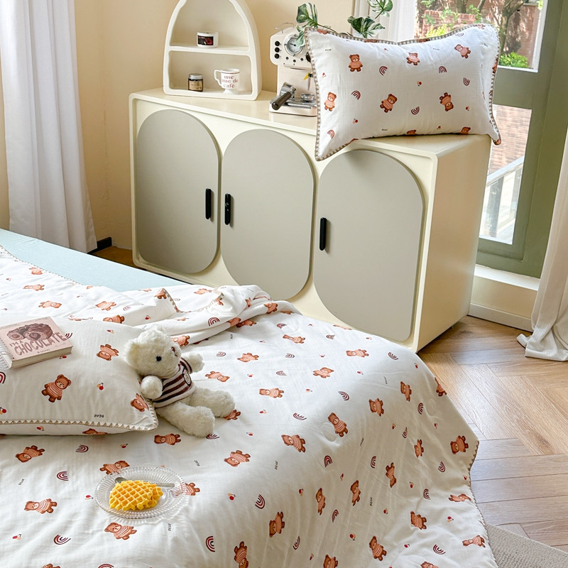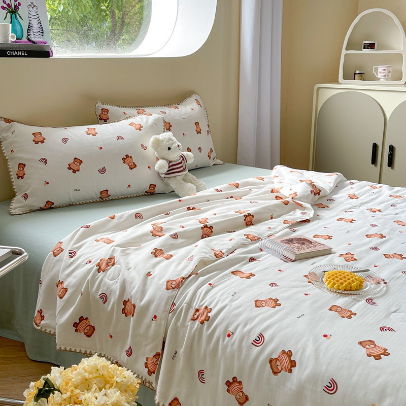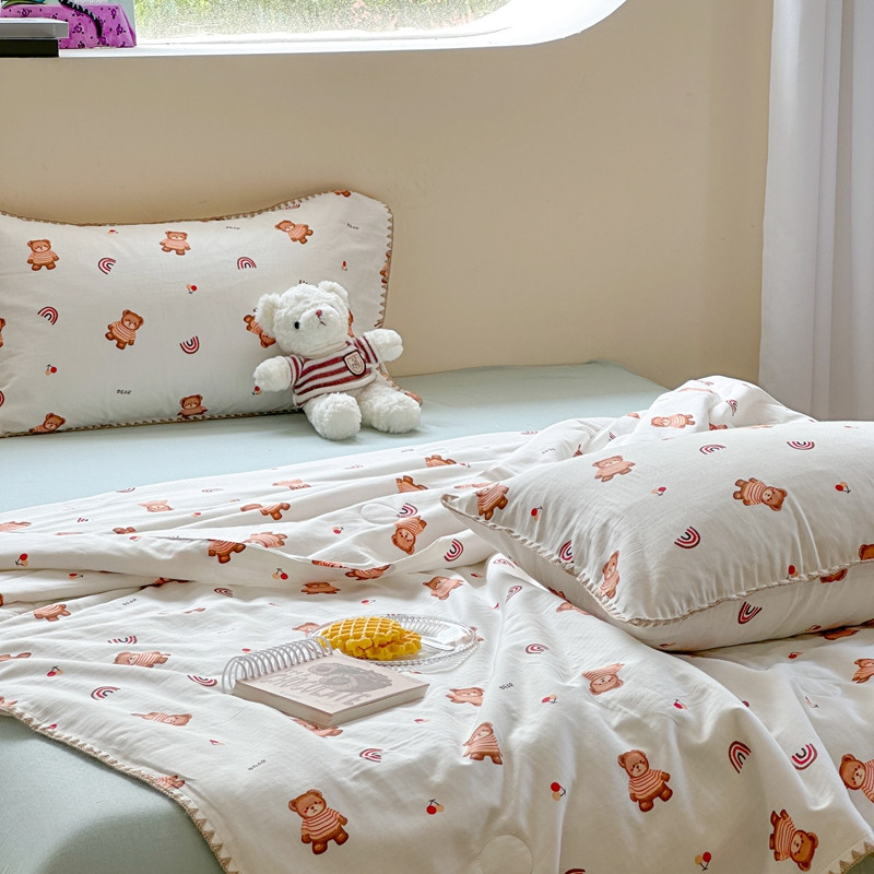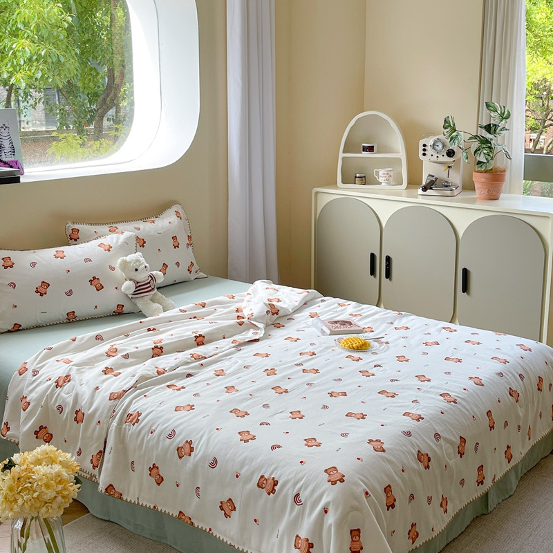商品名称:柚子 2023新款全棉有氧双层纱夏被四件套 草莓熊