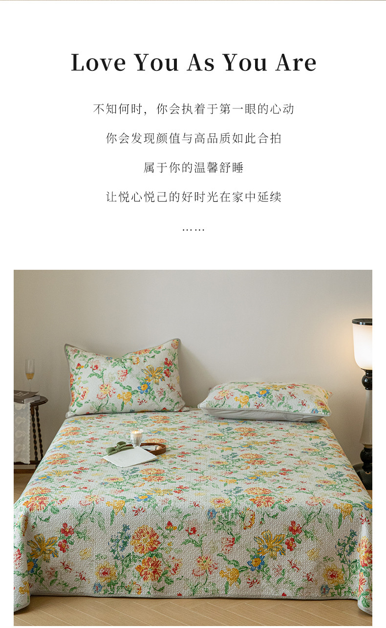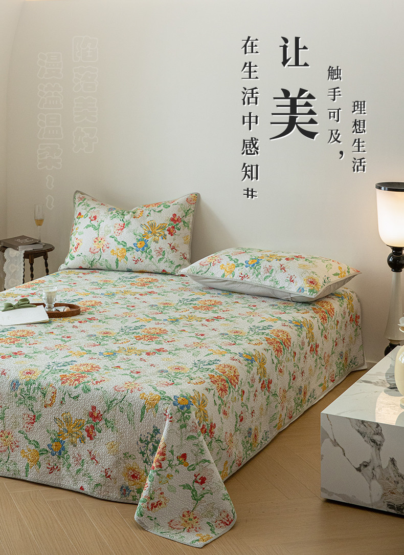 (总)上喜2025新款韩国全棉砂洗床盖系列,粉色,黄色,灰色,绿色,紫色