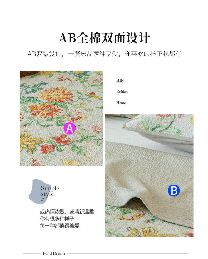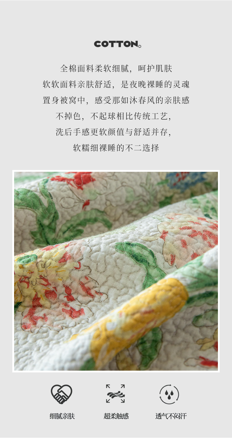 商品名称:(总)上喜 热卖双面全棉印花密绗床盖三件套