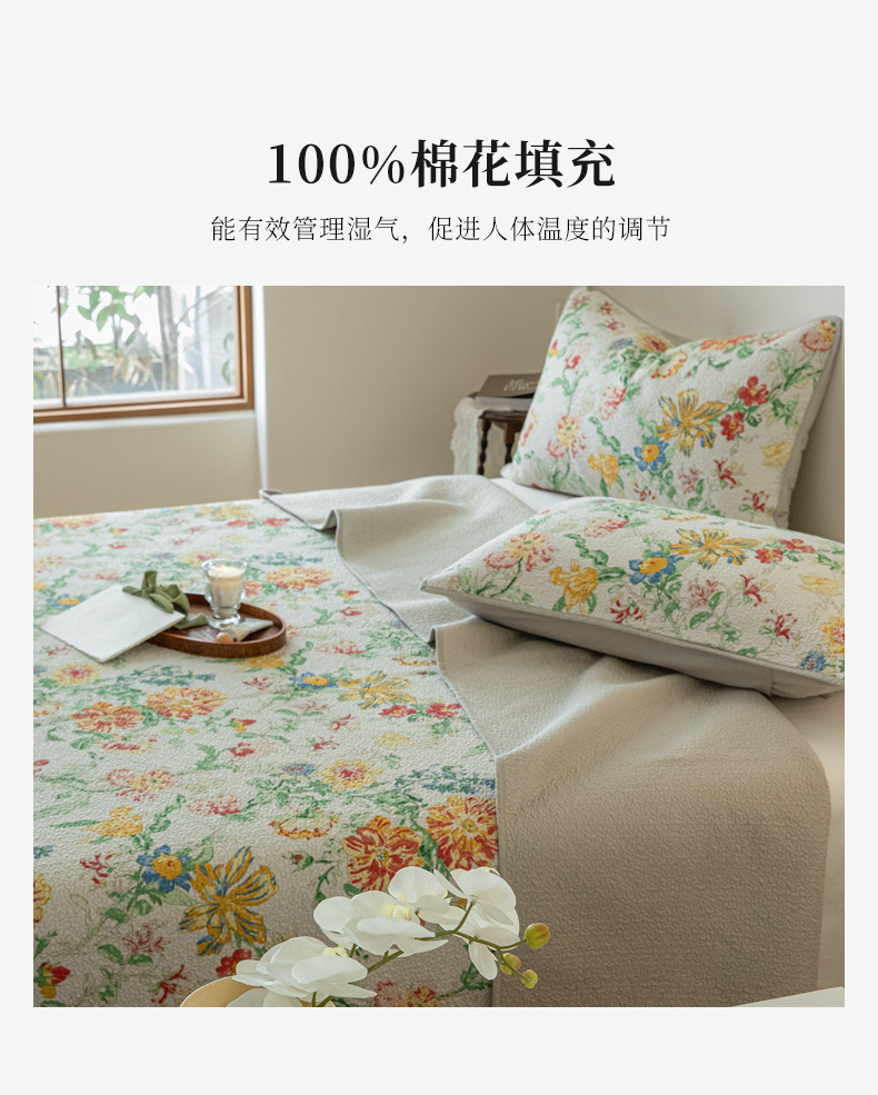 (总)上喜 2026新款艾草棉床盖多功能夏被,粉,灰,咖色