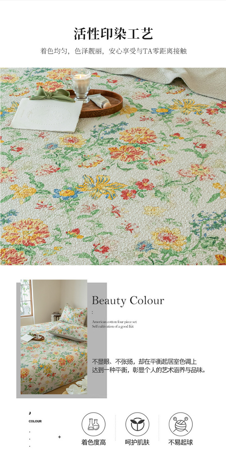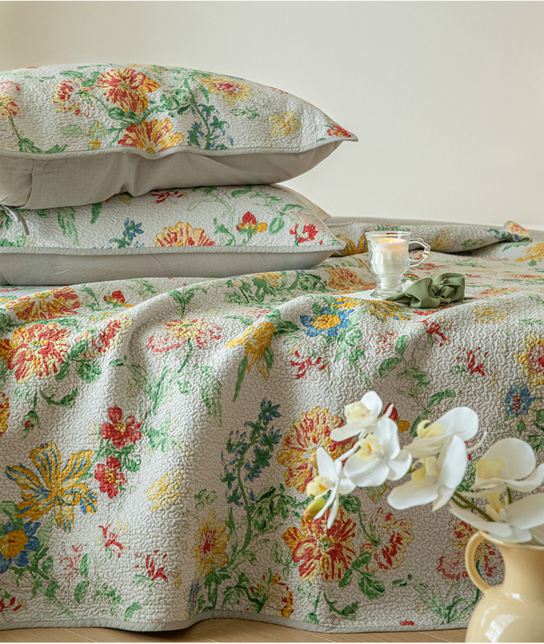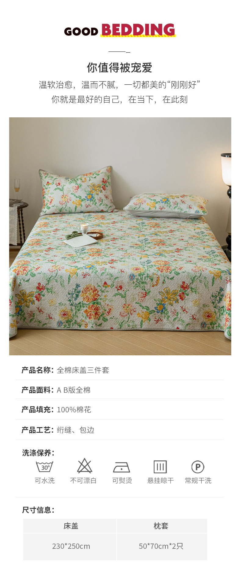 (总)上喜 热卖双面全棉印花密绗床盖三件套