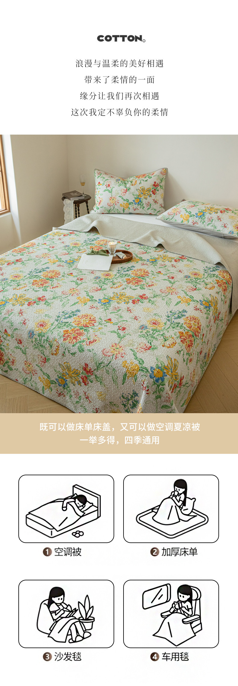 (总)上喜 2025新款韩国砂洗床盖+多功能夏被,白色,粉色,黄色,灰色,紫色