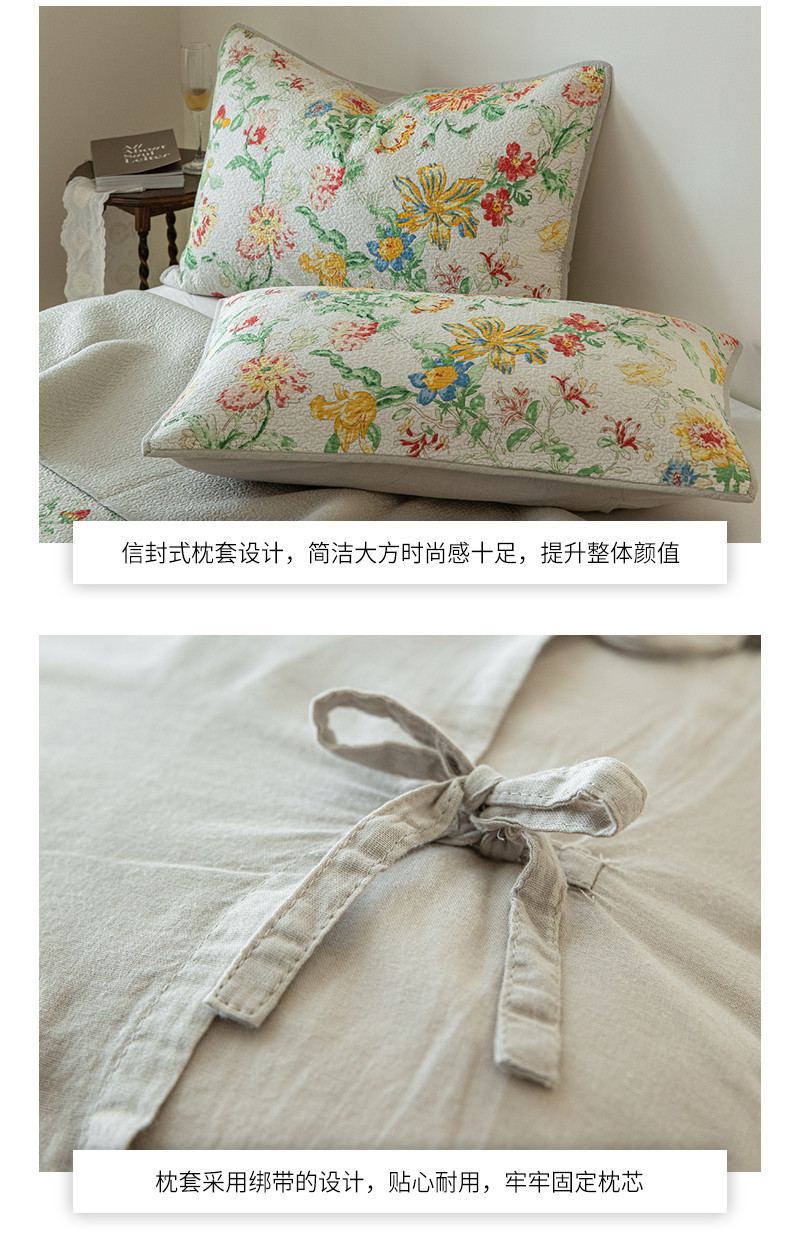 (总)上喜 2026新款棉麻小花刺绣款床盖多功能被子系列,麻本色,麻粉色
