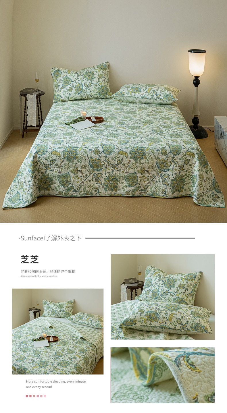 上喜 热卖双面全棉印花密绗床盖三件套 芝芝