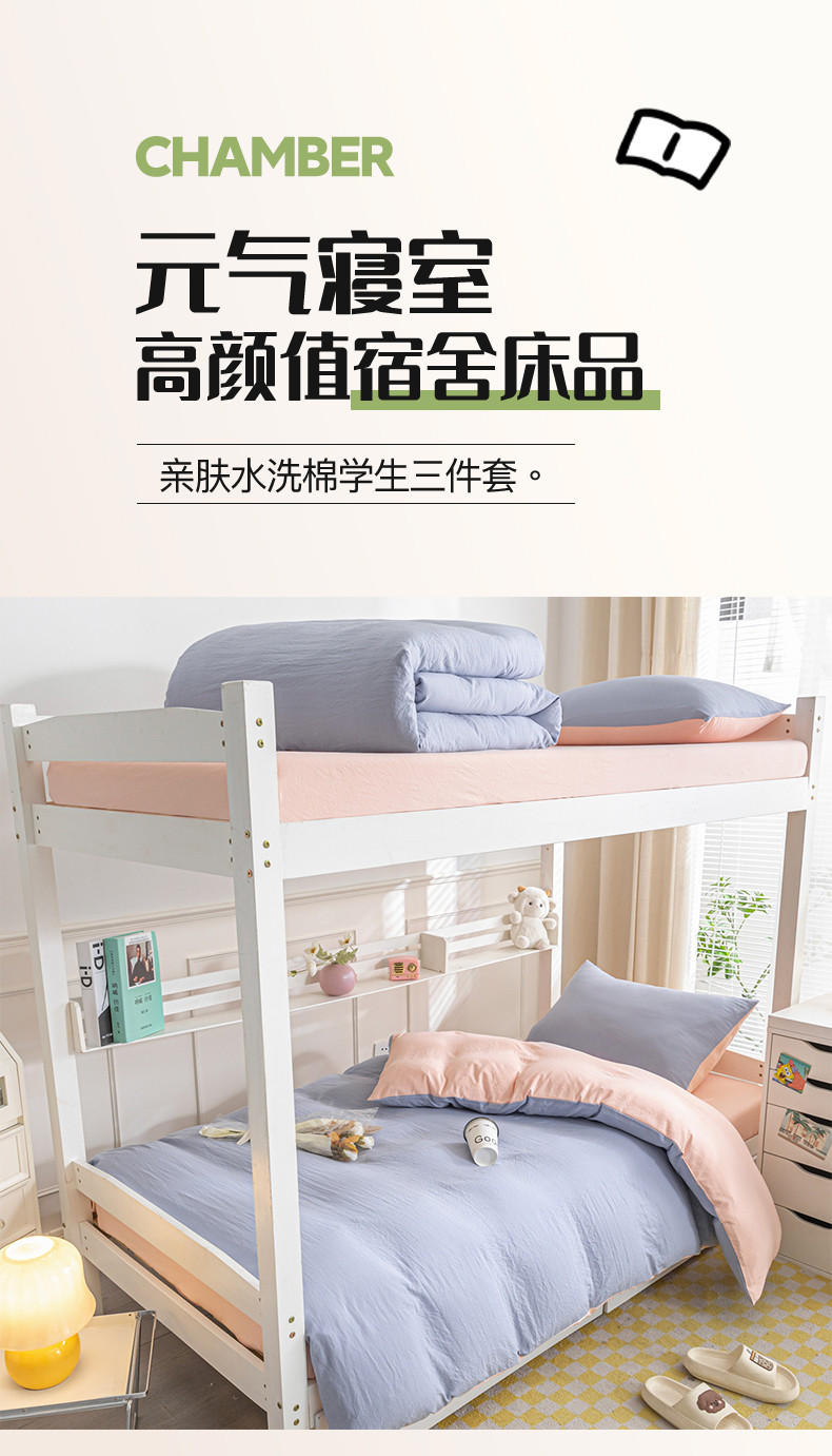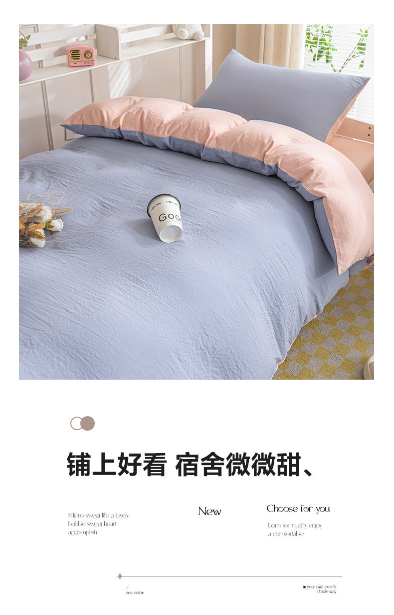 当前位置: 91家纺网 > 商品网购 > 床品套件 > 四件套 > 水洗棉四件套 > 古吉梦 2024新款纯色-双拼水洗棉学生三件套 纯色-星黛紫+奶油粉