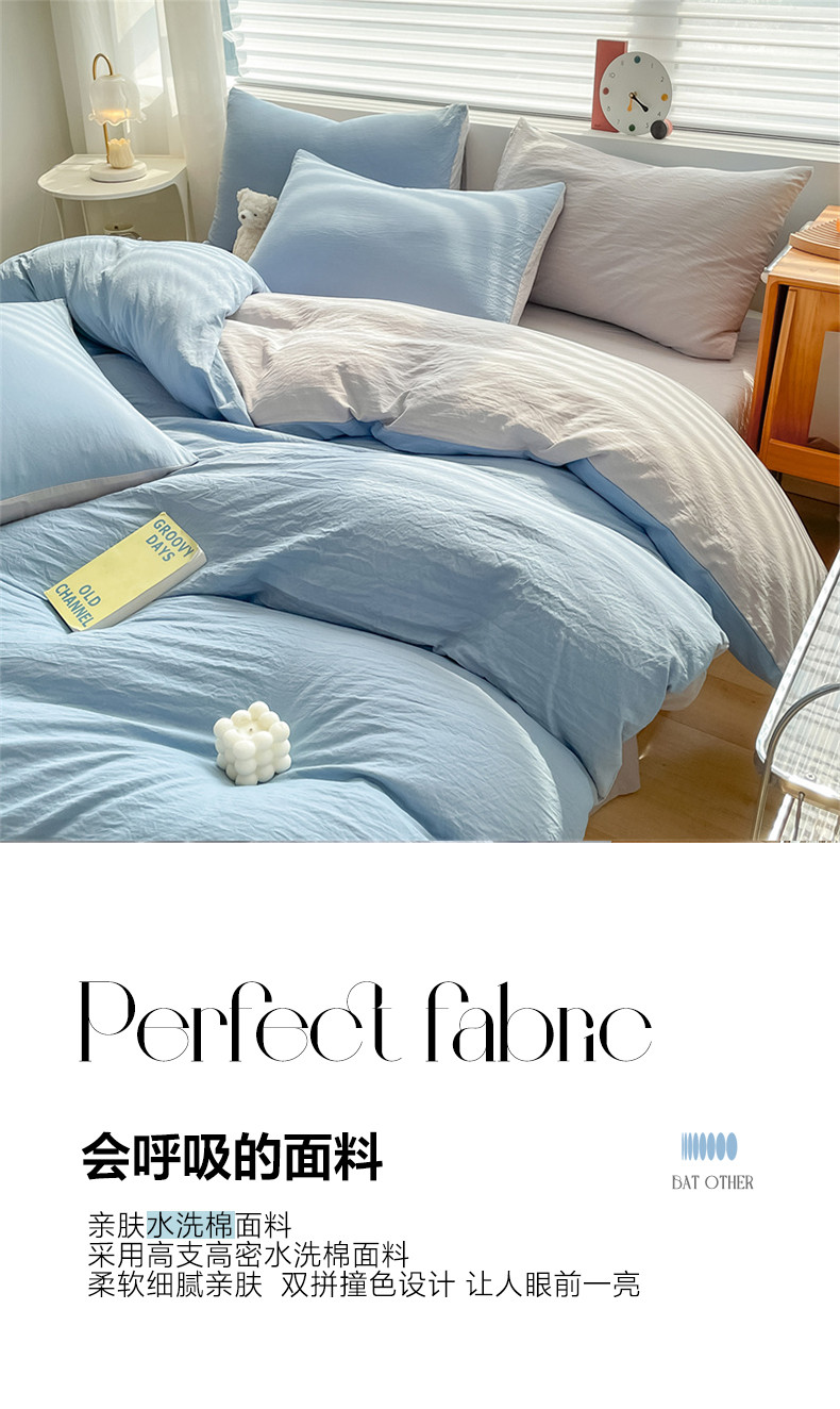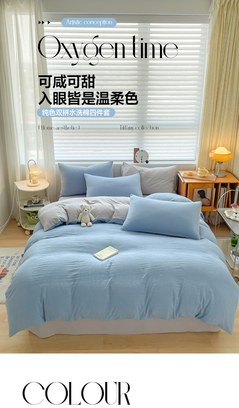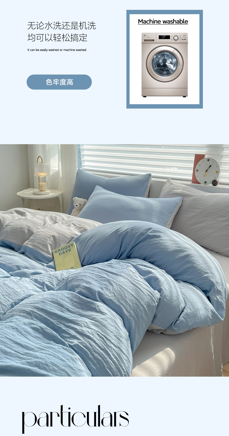 当前位置: 91家纺网 > 商品网购 > 床品套件 > 四件套 > 水洗棉四件套 > 古吉梦 2023新款纯色-双拼水洗棉四件套 纯色-海青+山灰