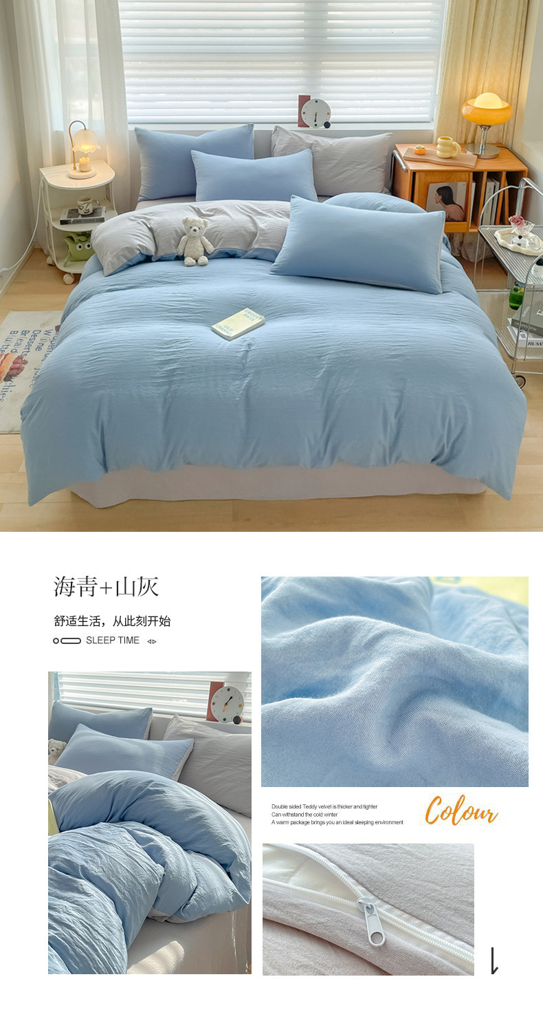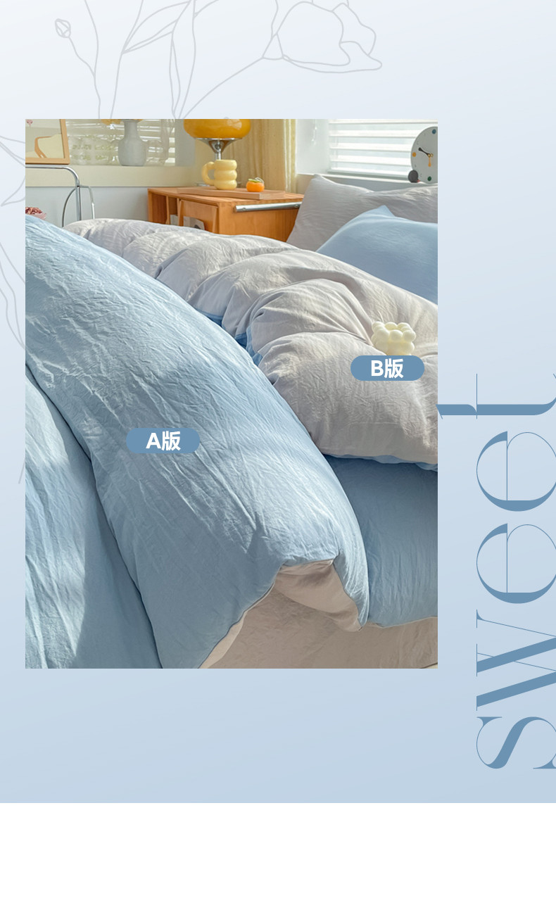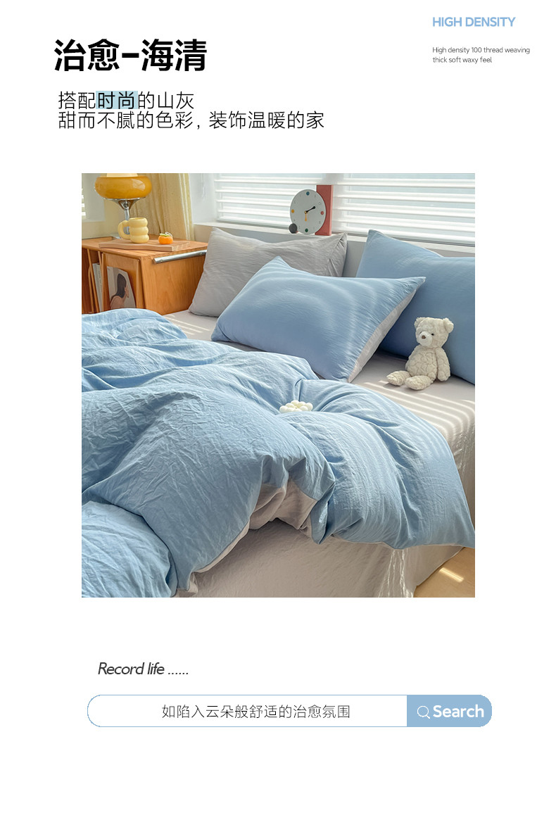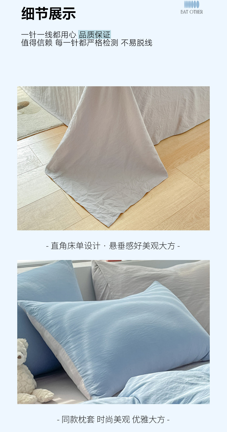 当前位置: 91家纺网 > 商品网购 > 床品套件 > 四件套 > 水洗棉四件套 > 古吉梦 2023新款纯色-双拼水洗棉四件套 纯色-海青+山灰