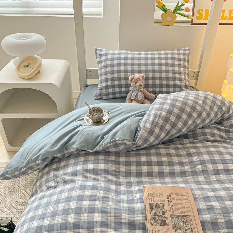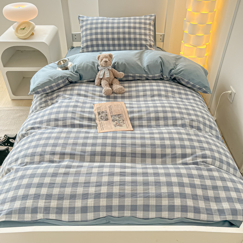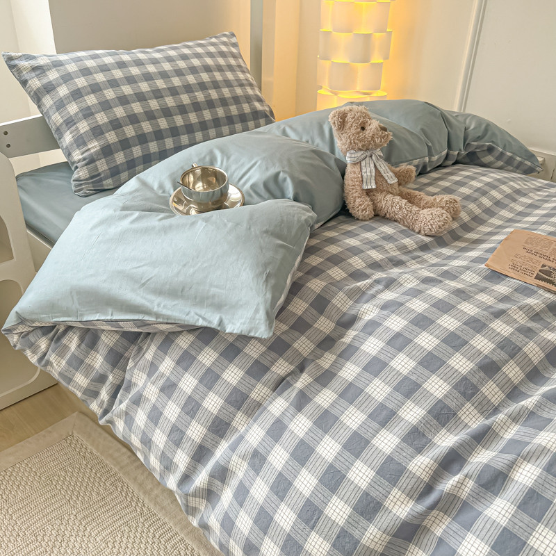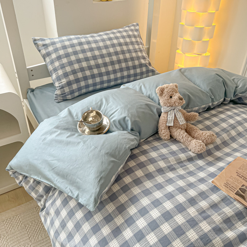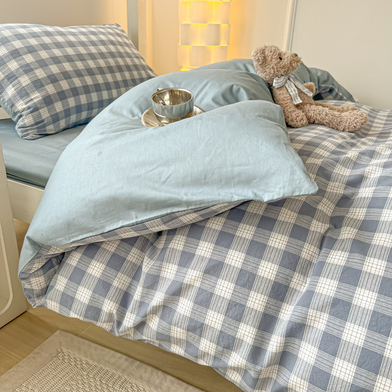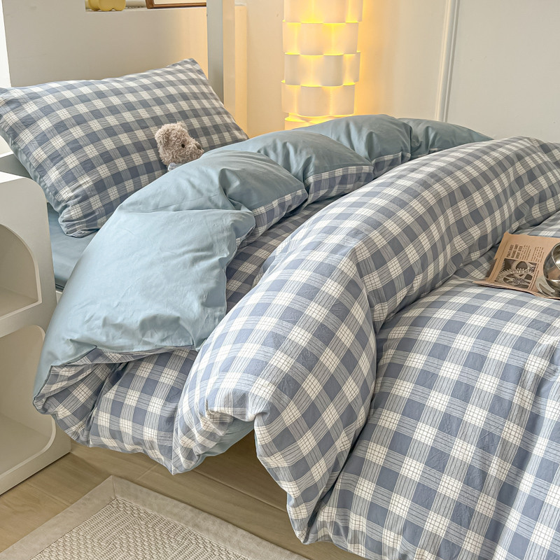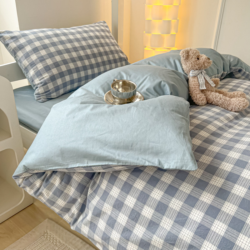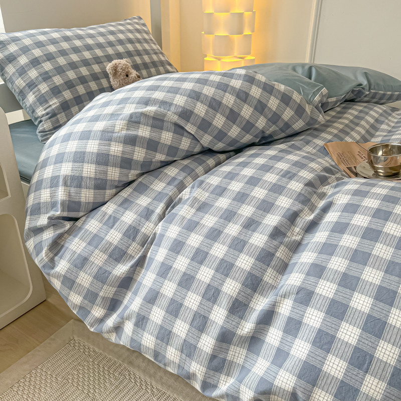 当前位置: 91家纺网 > 商品网购 > 床品套件 > 四件套 > 水洗棉四件套 > 盼季 2023新款无印风格子纯色水洗棉四件套 三分格蓝