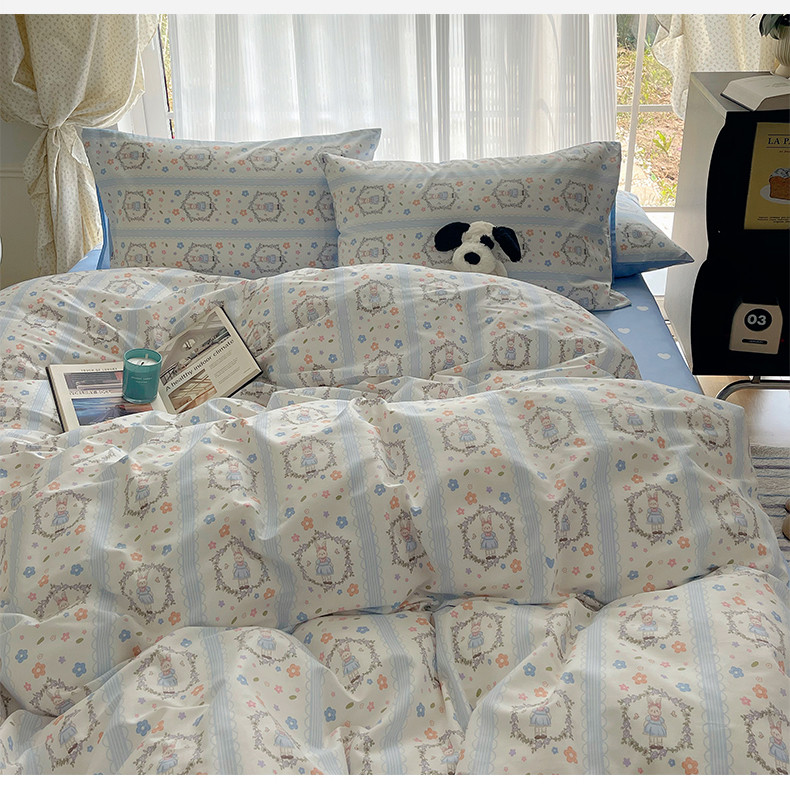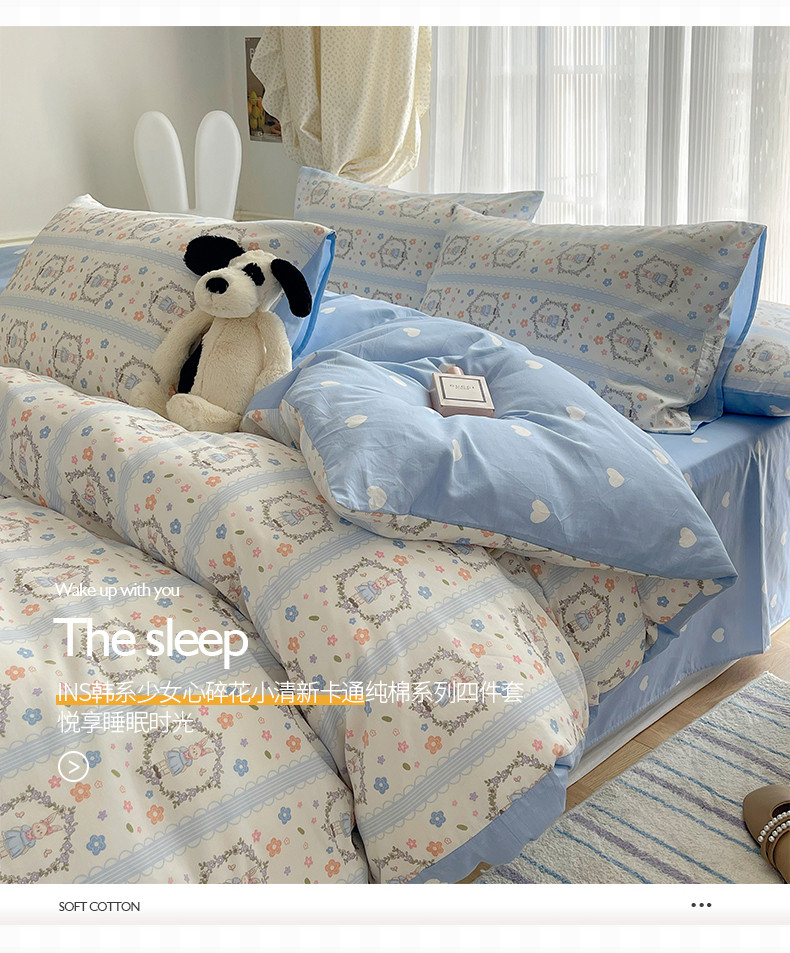 桃子 2023新款ins韩系少女心碎花小清新卡通纯棉系列四件套 棉-萝莉兔