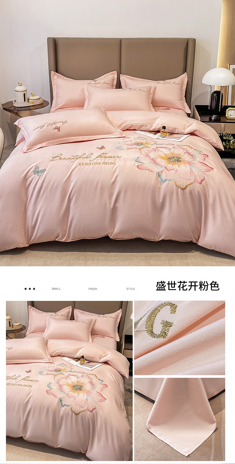 商品名称:帝菲妮 2025新款暖阳磨毛刺绣四件套-盛世花开 盛世花开-粉色