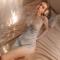 洛兰沙 2023新款外贸冰丝蕾丝吊带和两件套-1048欧拉 天蓝色
